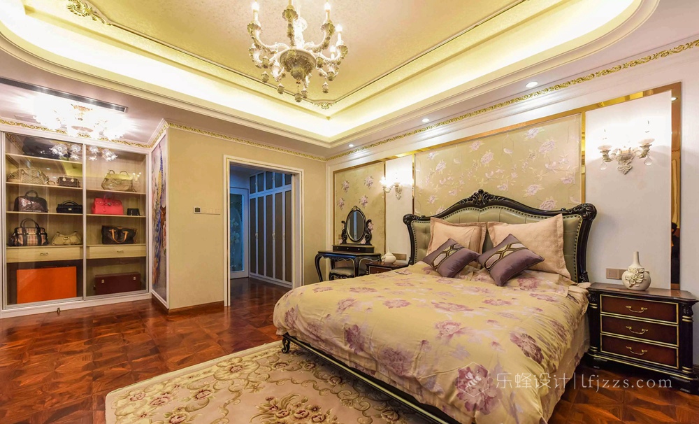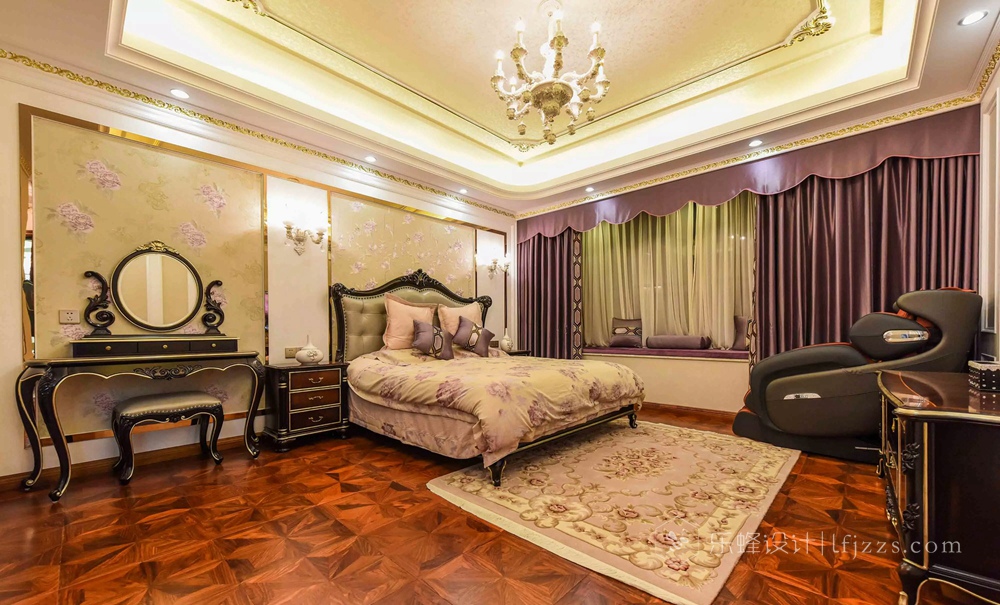 - 主臥實景圖 - 主臥孔雀開屏的背景,賦予空間更多的靈動性。古典的家具搭配,渲染出奢貴富麗。