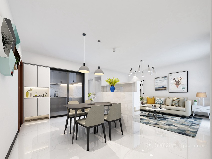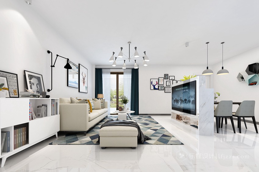 北歐風格的裝修沒有過多冗雜的裝飾和花紋,用一種最簡單、直接、功能化且貼近自然的線條來表現其寧靜的北歐風情。本案以淺灰色為基調,搭配白色、原木色等輔助色,以少量純色作為點綴,整體傾向于淺色系,給人一種干凈明朗的感覺。