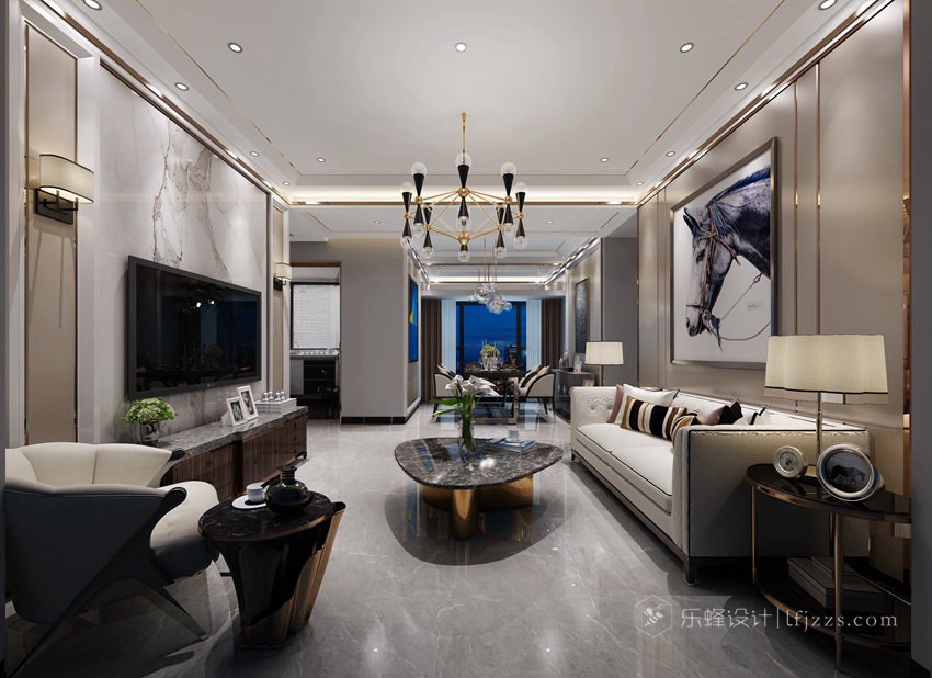 客廳背景墻面采用灰色拉絲鏡面和白色大理石搭配,沙發(fā)背景和其他墻面全部采用咖色硬包,淺色皮質(zhì)沙發(fā)搭配局部跳色的裝修配飾,裝飾掛畫(huà),使空間不太單調(diào),客廳感覺(jué)寬闊而不空曠,讓人感到?jīng)]有拘束和束縛,這樣的房子不僅住的舒適,還追求個(gè)性。