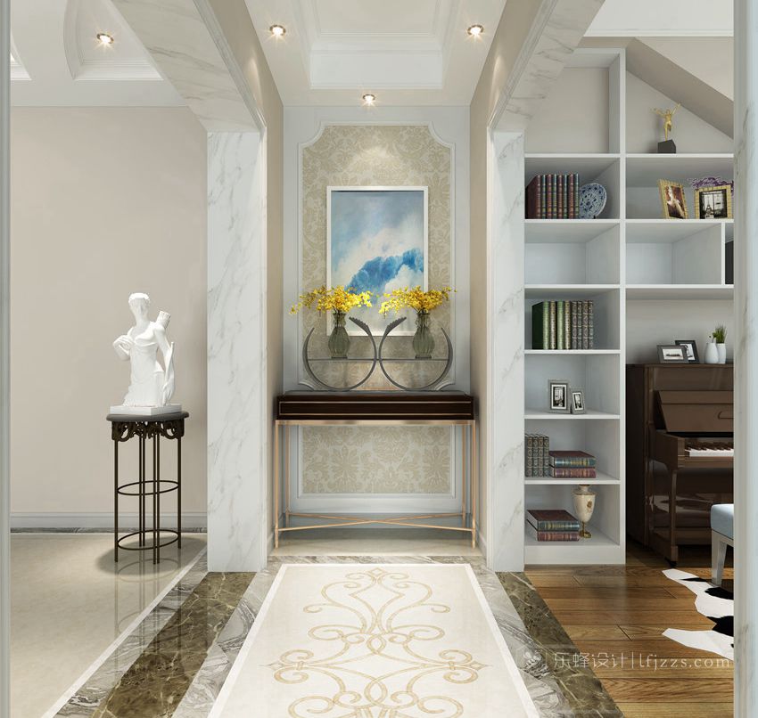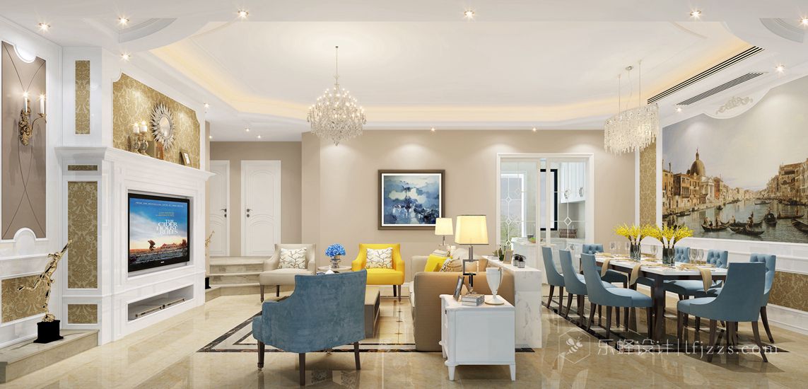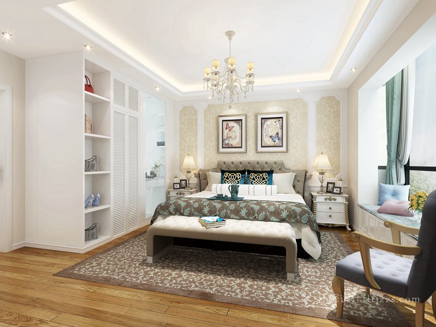 簡歐風格的裝修沒有過多冗雜的裝飾和花紋,用一種最簡單、直接、功能化且貼近自然的線條來表現其寧靜的北歐風情。本案以淺灰色為基調,搭配白色、原木色等輔助色,以少量純色作為點綴,整體傾向于淺色系,給人一種干凈明朗的感覺。