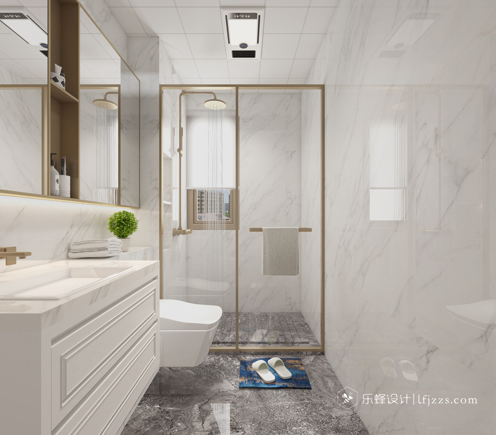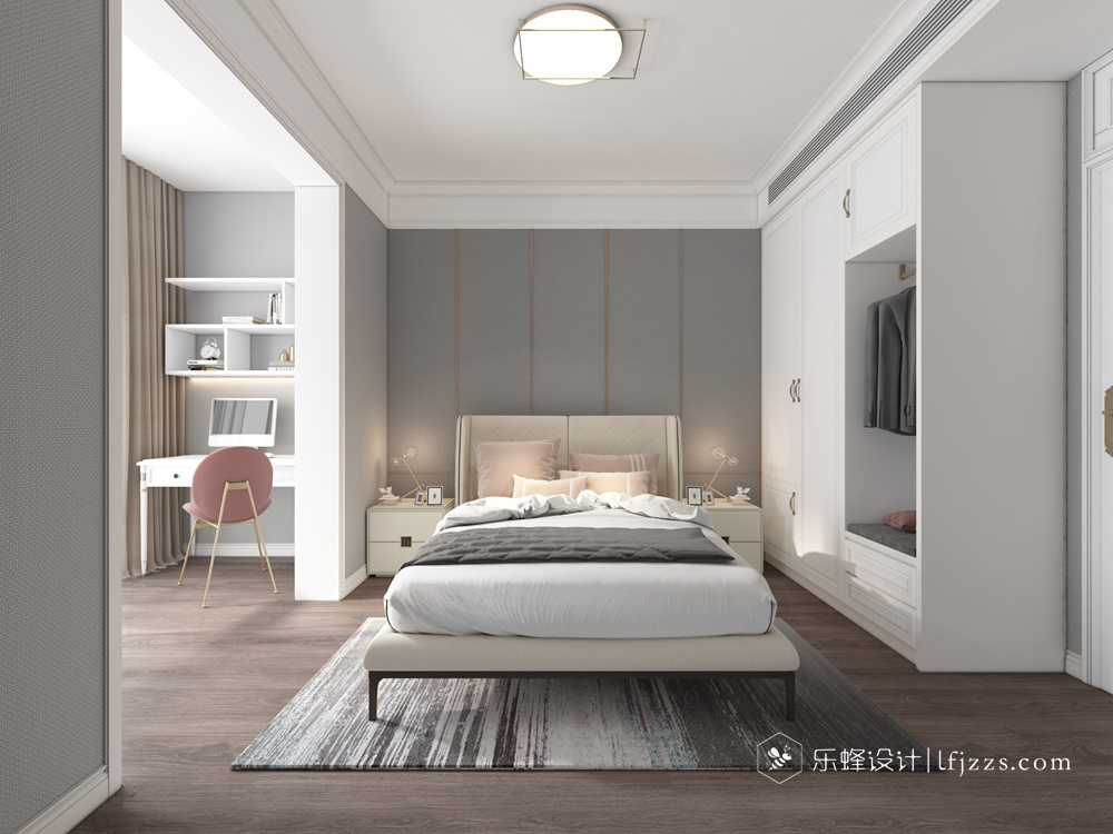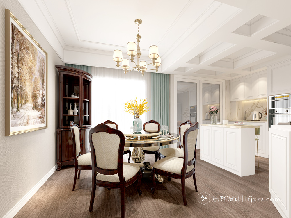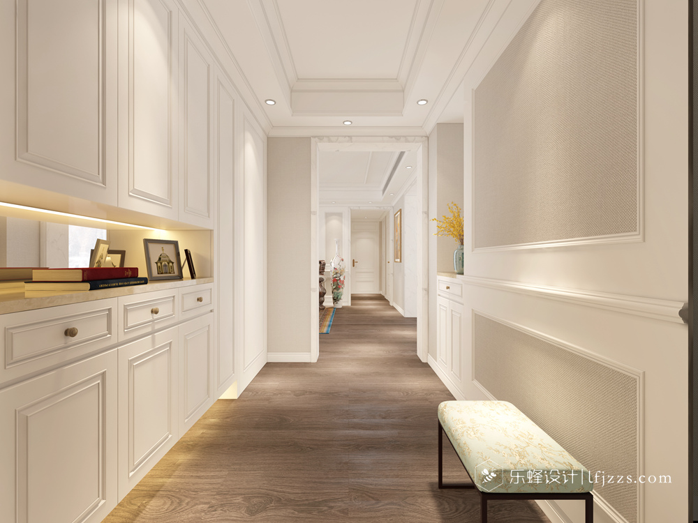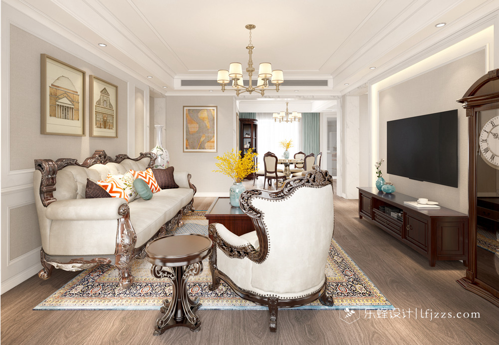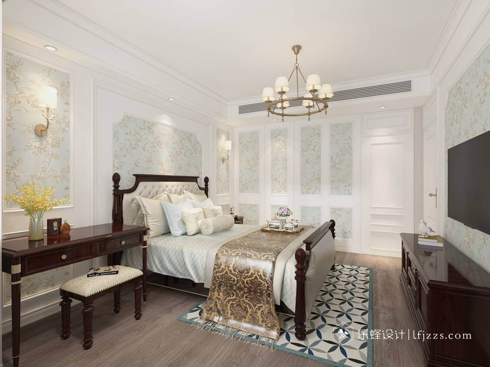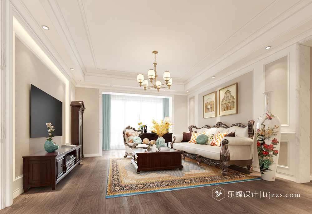 本案為美式風格,設計以舒適優雅為主,略帶點奢華之美,在特定位置點綴不同的顏色,配上美式的家具和燈具,突出風格氛圍。