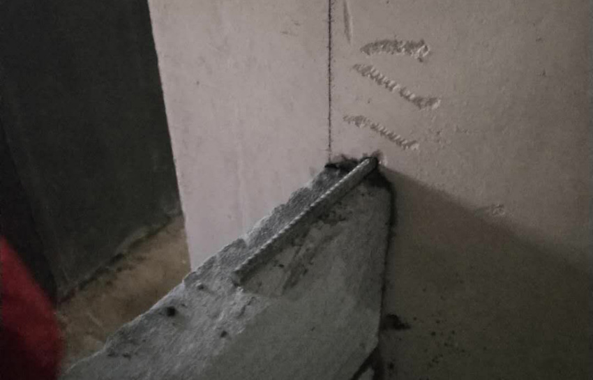 B:新建墻倒地梁,與原來墻交接加鋼筋加拉,防止新舊墻交接處開裂,頂部小沙磚斜砌,防止與天花接縫處開裂。