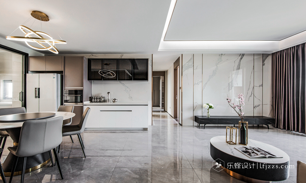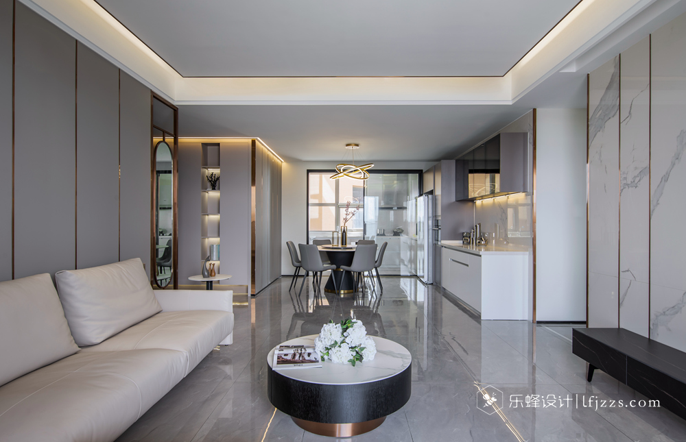 該項目位于南山區深圳大學旁的高端住宅社區,客戶丈夫為金融圈的高管,年紀輕輕,事業有成??蛻舻囊蟊容^簡單,整體設計要求時尚大氣,又不失高貴。