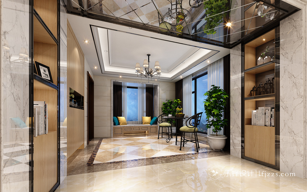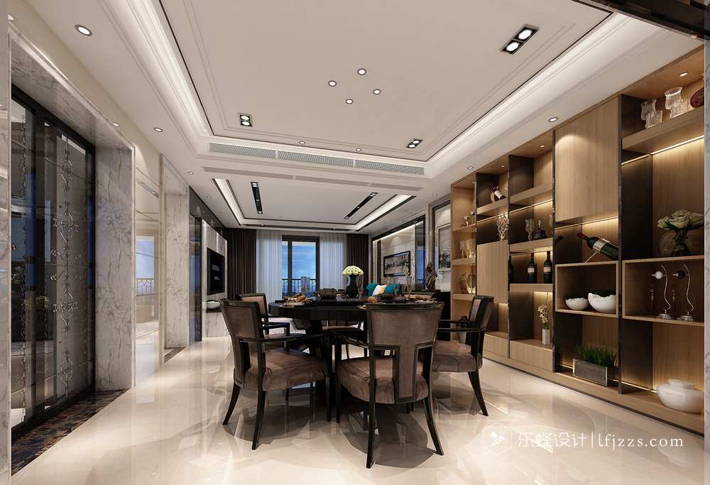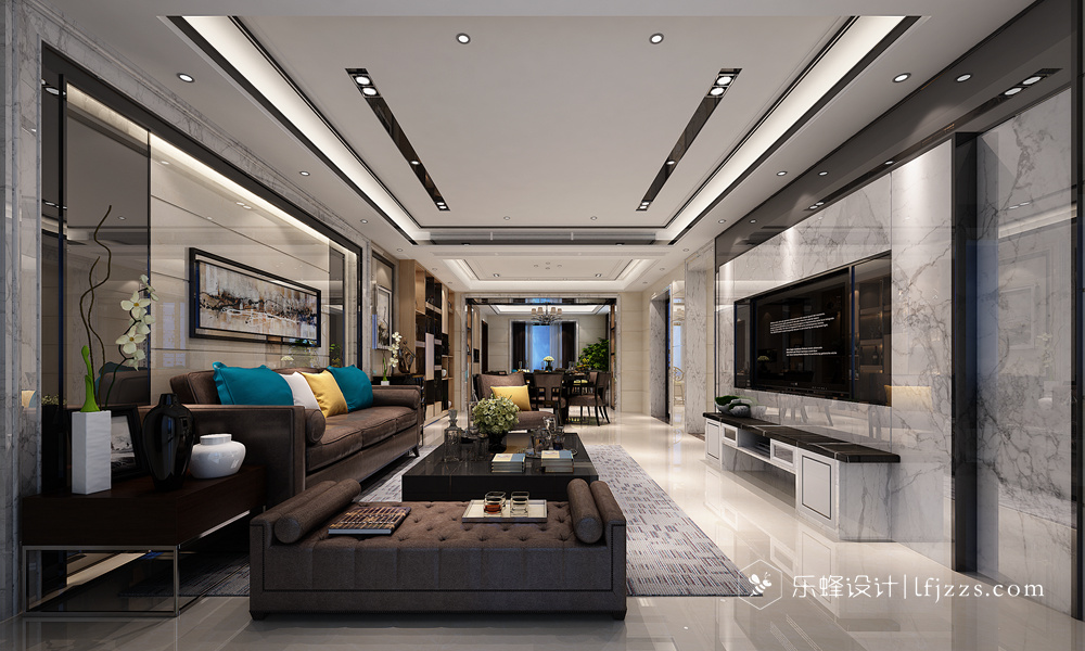 本案最大亮點在于經雙方溝通一拍即合,設計極大的提高了居住者的生活品質。精心搭配與選擇每款裝修材料也是本案一大特點。本案客廳的電視背景墻采用了進口雅士白天然大理石做墻面裝飾,搭配木色實木木門,沙發背景索菲特金大理石做邊框再用黑鈦金做裝飾墻的中心,灰鏡在兩個材質的中間做過度,整體墻面鋪貼大理石瓷磚。本案的衛生間瓷磚選用了黑色仿古工藝磚,降低整個衛生間色調以后,洗手盆是理石廠定做的純白色天然理石,通過兩者顏色的強烈對比來達到衛生間的層次分明和豪華效果。