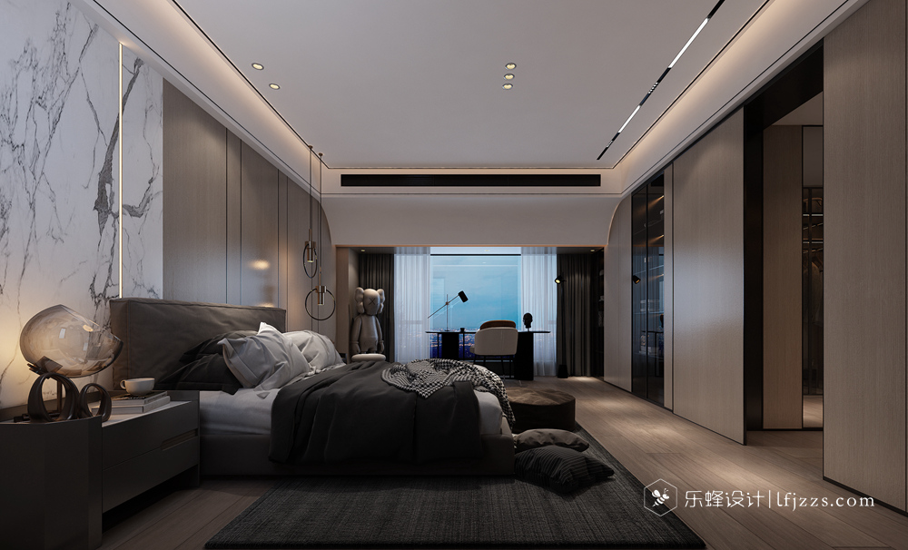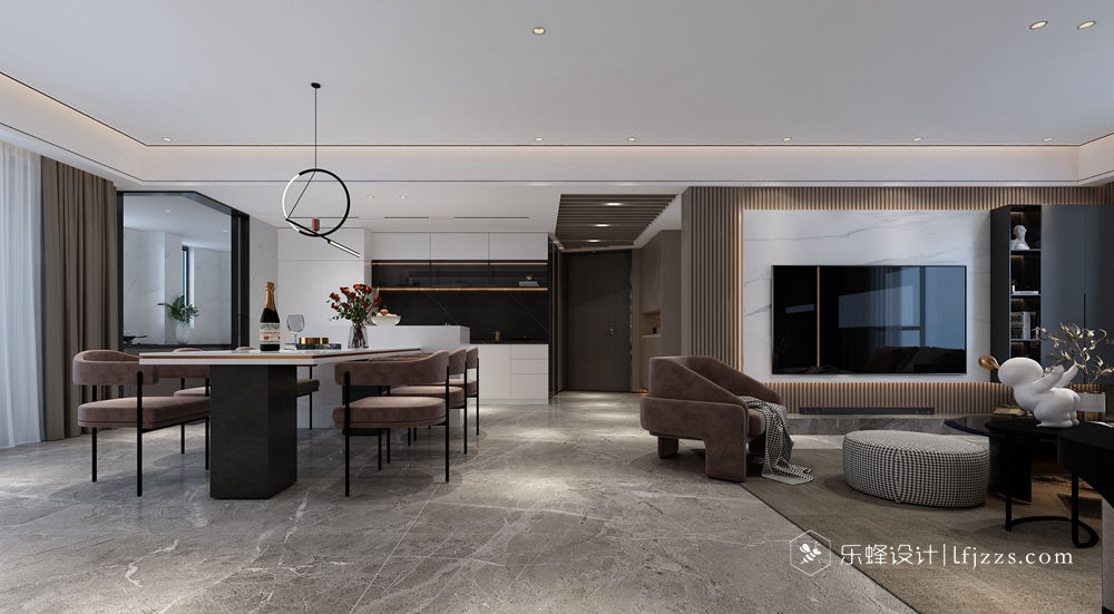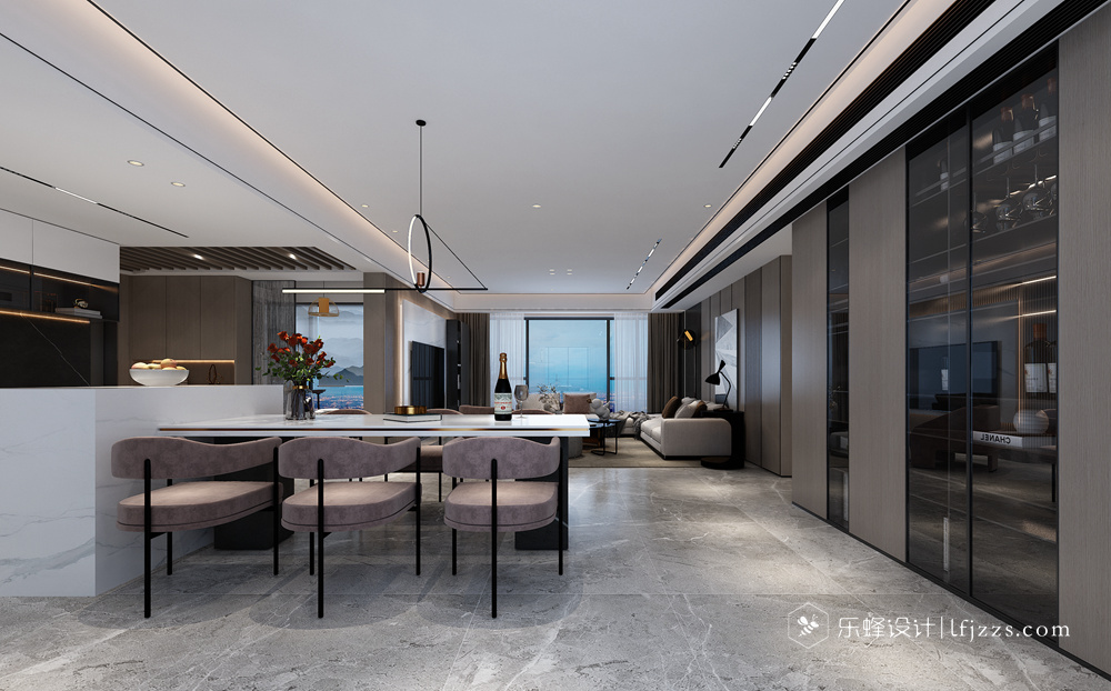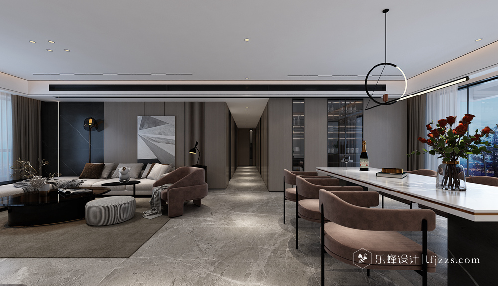 本案為現代簡約風格,整體空間以現代雅致為基調,運用新現代主義設計手法,巧妙糅合空間、文化與生活藝術,打造出一個現代時尚的輕奢空間,彰顯奢華內斂的人文氣度。通過塊面和線條的塑造使其更具包容性。