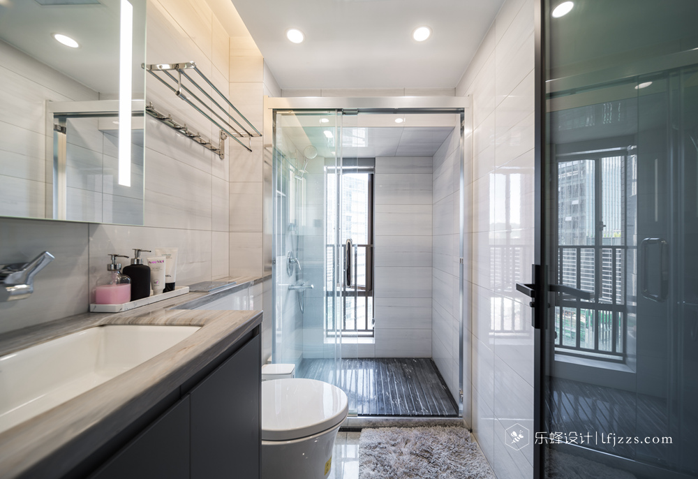 - 衛生間實景圖 - 衛生間干濕分離,讓兩者相對獨立,提高了高峰期使用的便捷性。白色的空間洋溢著金屬質感,賦予全新的空間感和立體感,搭配上橘黃色的燈帶,照耀在瓷磚上,使用空間更加的溫馨。