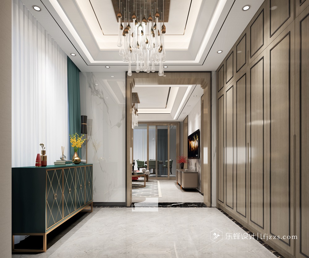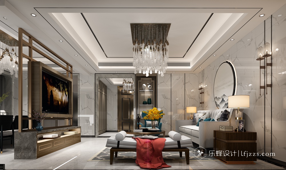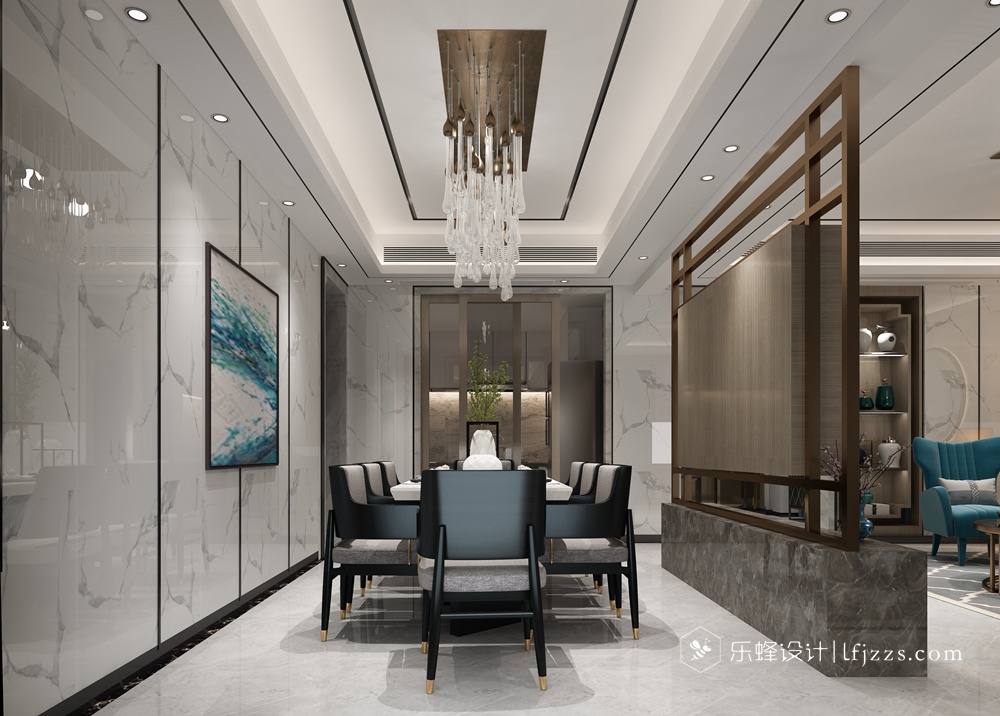此戶型為現代中式風格,根據客戶需求與想法,為了給業主創造一個穩重與舒適的空間。空間大部分以大理石加不銹鋼條裝飾。不是純粹中式元素的堆砌,而是將傳統元素與現代設計手法巧妙融合,完美的體現了空間的層次感。合理運用室內家具以及裝飾性的工藝品,使業主可以得到一個更為合理的空間布局。
