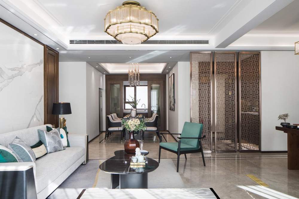 新中式風格從簡單到繁雜、從整體到局部,精雕細琢,鑲花刻金都給人一絲不茍的印象。一方面保留了材質、色彩的大致風格,仍然可以很強烈地感受傳統的歷史痕跡與渾厚的文化底蘊,同時又摒棄了過于復雜的肌理和裝飾,簡化了線條。