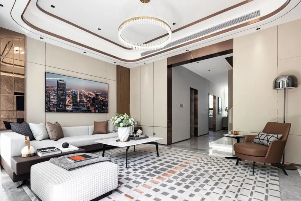 現代輕奢風格的一個主要特點是裝飾設計以高品質和簡約為基礎。設計大氣、時尚、前衛、典雅,給人一種溫馨舒適的感覺,與熟悉的現代簡約風格相比,它更具有質感和設計感;它展現了生活的純潔與純潔,它融合了奢華與內涵的氣質。