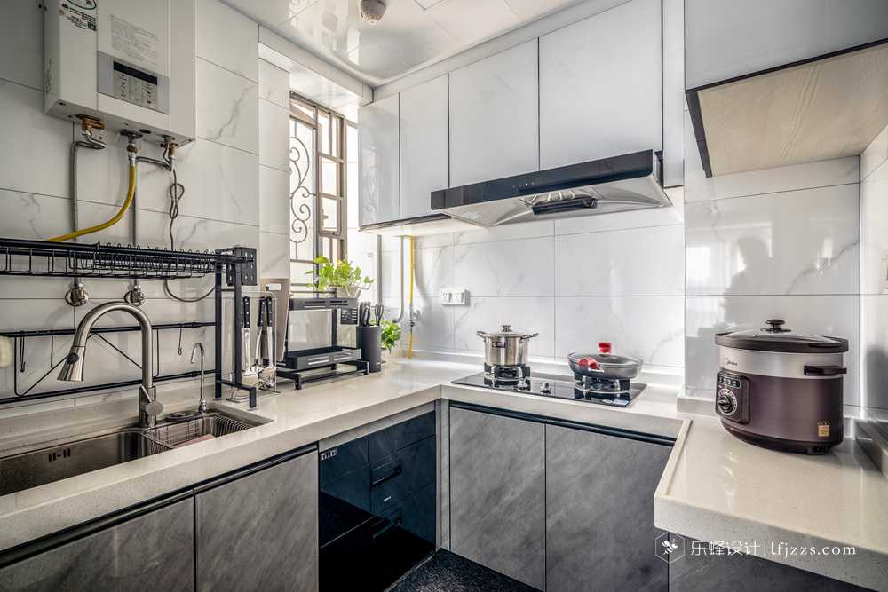 U型大理石櫥柜設計,廚房雖小,動線最短,方便下廚。