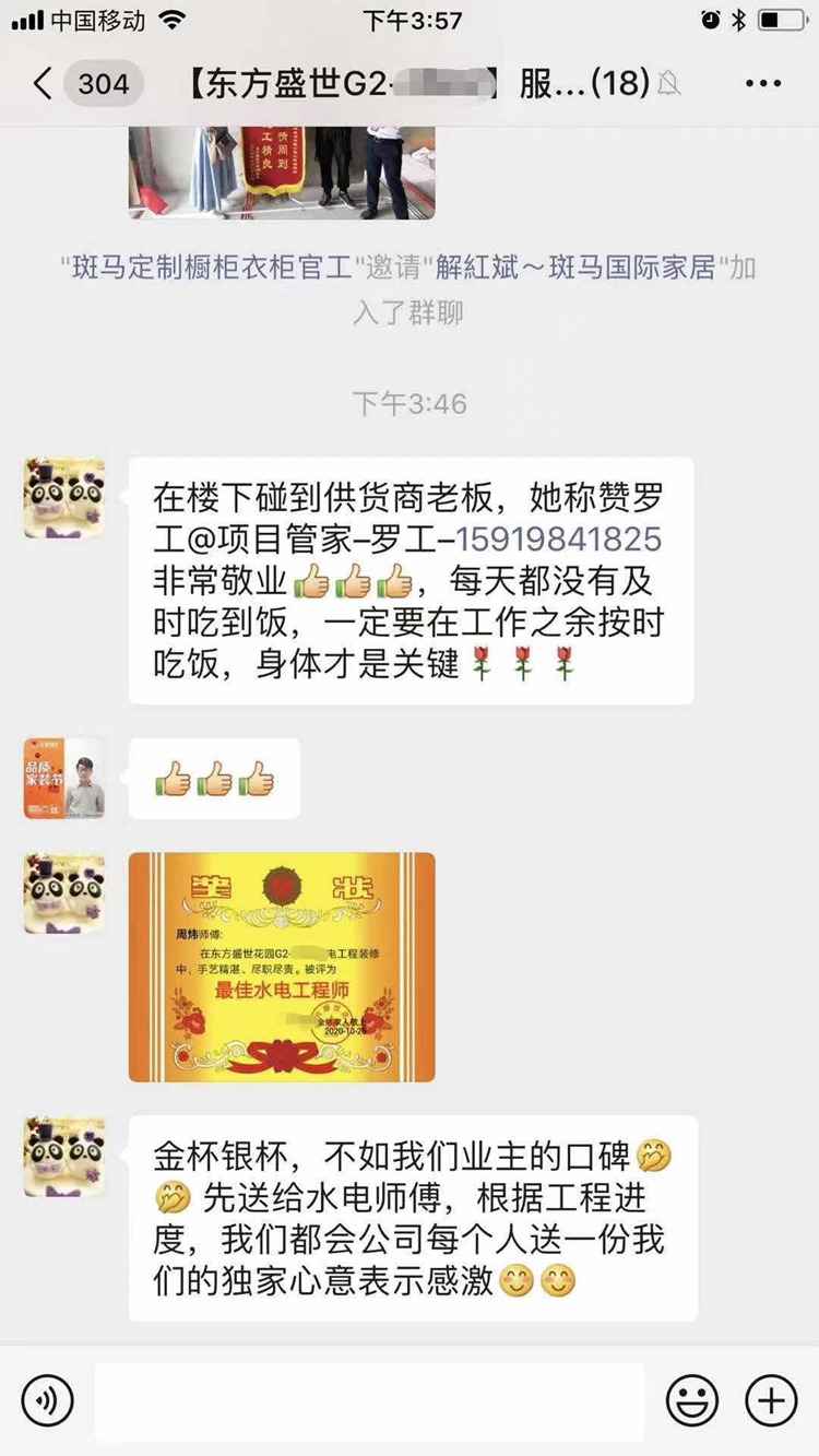 東方盛世業主:去年年初買的新房,快兩年了,想著自己要住上新房,今年下定決心要把它裝修,說實話開始真的選不好裝修公司,怕被坑了,后來聽朋友說可以去風止看看,然后我就果斷來網上看了看裝修公司,看到了樂蜂精裝裝修公司,客戶評價服務,設計,保障都不錯,就約了他們設計師上門看房子,量了尺寸做了報價方案,設計師很貼心,服務上也很靠譜,報價以及選材給的都很詳細和實在,之后又聯系了第二家公司,最終選擇了樂蜂裝飾,現在整個裝修施工階段進展非常順利,本人最注重這個階段,每次去現場看了,都很滿意,工長和品空很是靠譜,工長也很負責任,希望很想看到最后完整的樣子,給他們點贊!