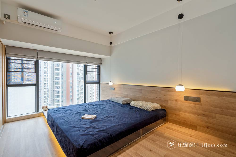 - 主臥實景圖 - 主臥中地臺床的設計非常日系,原木的床頭搭配+簡易的床頭燈,不需要其他的點綴,足以舒適且高級。