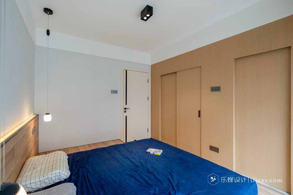 床尾一側是以原木打造的隱形門設計,整體視覺效果協調統一,也節省空間。