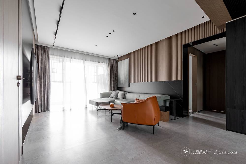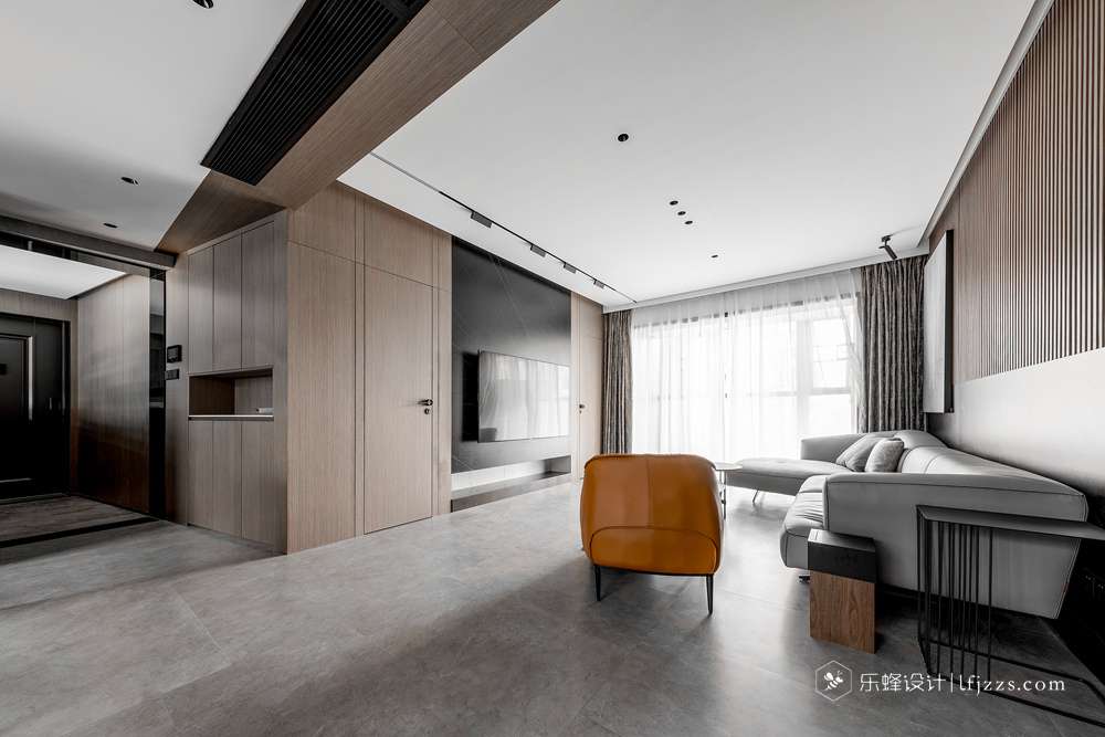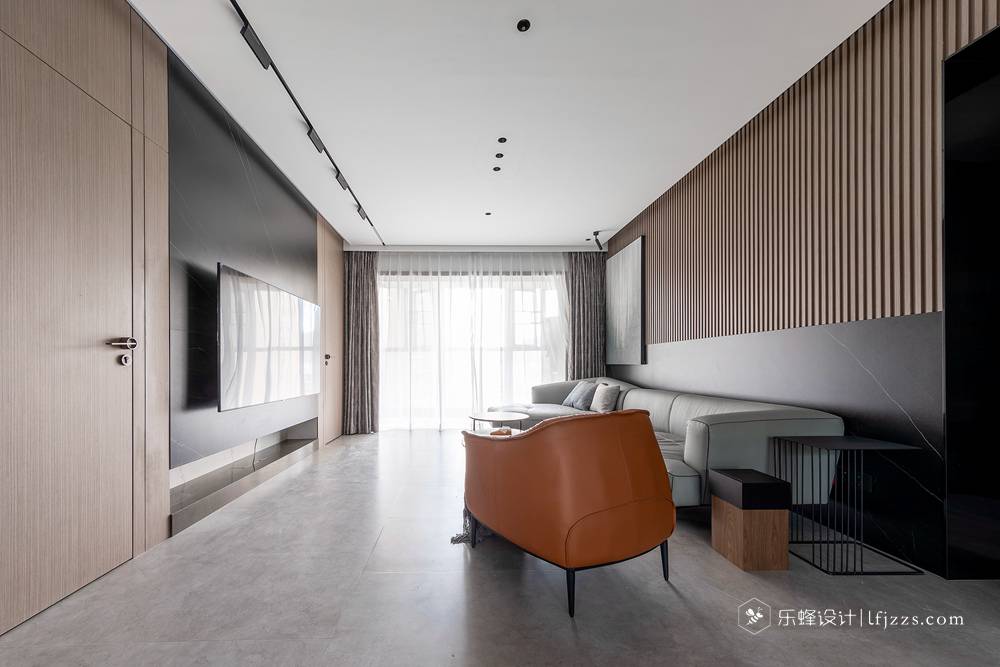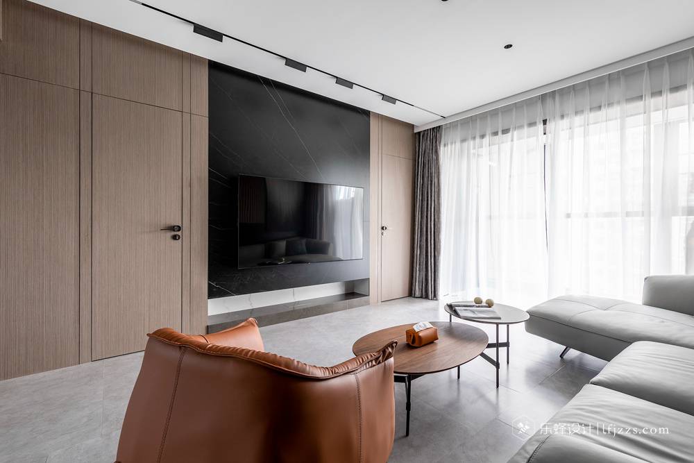 - 客廳背景墻試過幾個造型,電視使用懸掛的樣式,背景用上純黑色和木色的拼接,形成色階的層次感,給人帶來特別溫馨和溫暖的感覺。