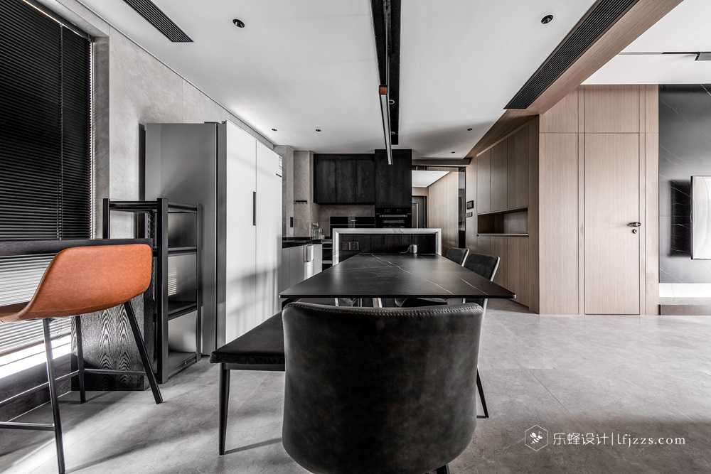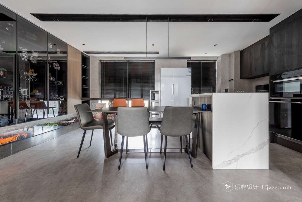 - 餐廳實景圖 - 餐桌椅選用了看起來比較時尚的造型同時顏色選取了跟整個空間比較搭配的顏色,餐廳跟廚房做成一體,顯得整個空間更加的大氣,讓平時烹飪的味道彌漫整個空間,給這個家帶來更溫馨的氣息。