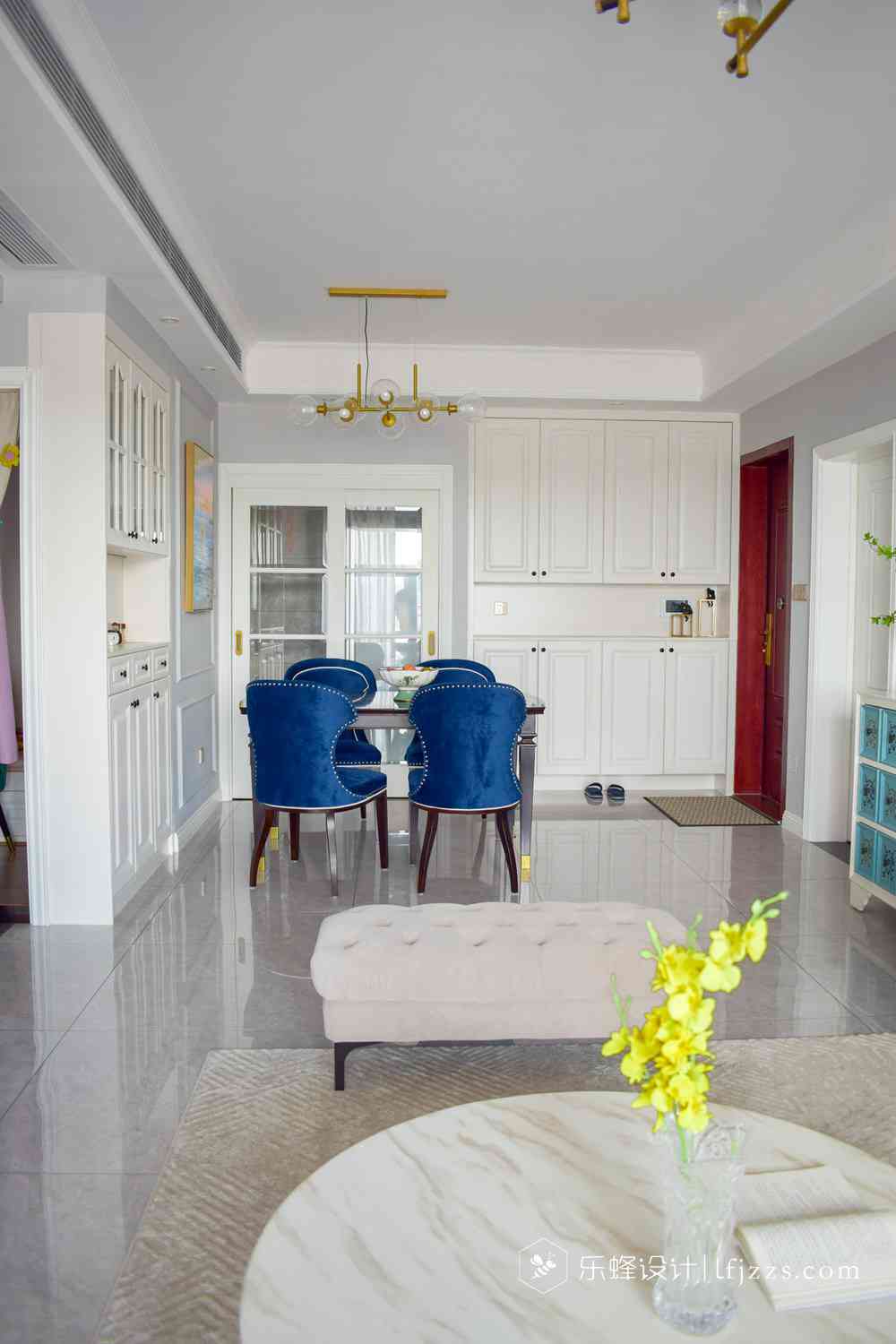 方案以整體空間更加開闊為主,背景墻面裝飾采用了經典的壁爐造型,突出整個空間的氛圍感而其他地方則選擇乳膠漆為主,在特定位置點綴不同的顏色,配上美式的家具和燈具,突出風格氛圍。