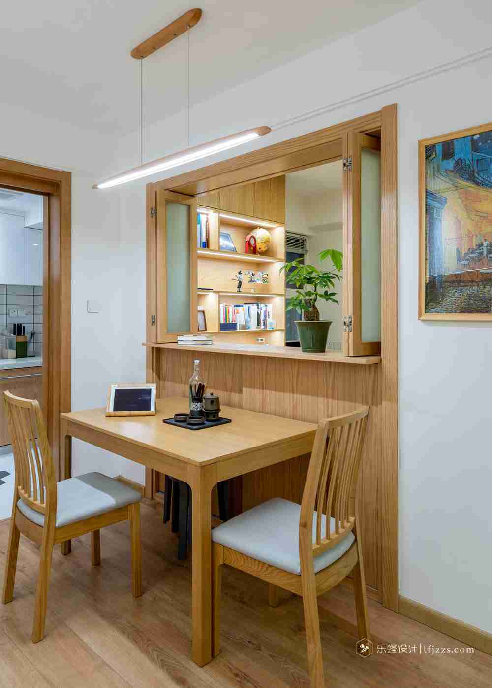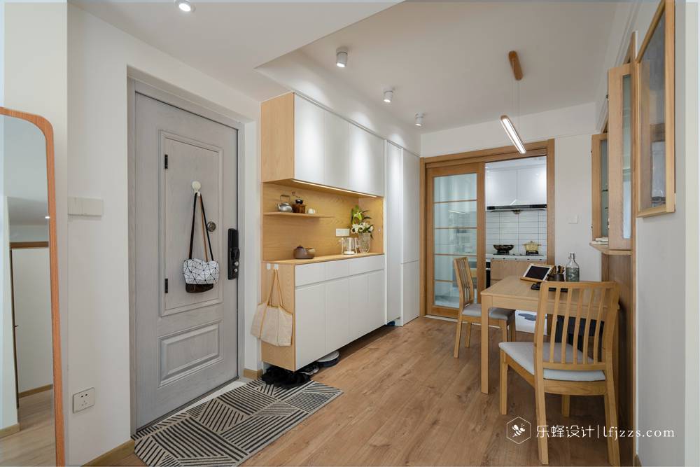 - 餐廳實景圖 - 餐廳沿用空間的風格,搭配原木風的桌椅,射燈與吊燈的搭配,把餐廳整個空間顯得更加的溫馨,進門就做了一排的鞋柜,把空間更加的利用。