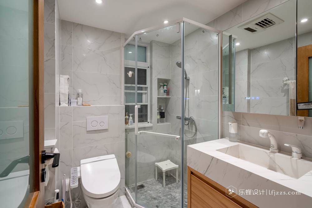 - 衛生間實景圖 - 衛生間雖小,但是也做了一個淋浴隔斷,這樣可以把空間劃分的更加的鮮明,也不會把空間搞的那么的雜亂,合理的空間布局讓生活更加的便利。