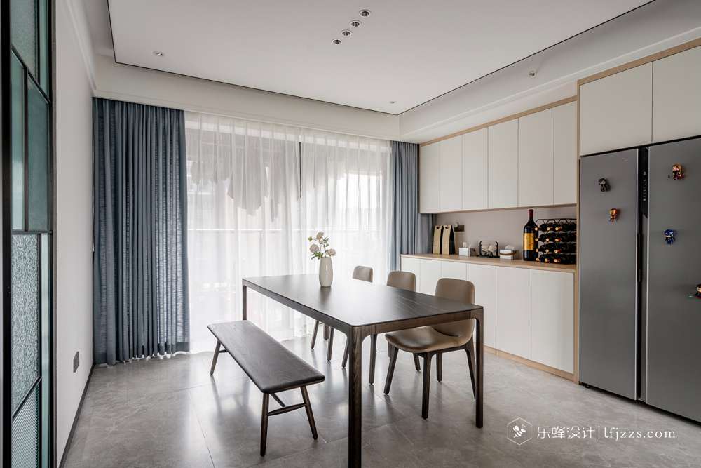 餐廳部分做了結構小調整,將原有利用率不大的儲藏間墊平,內嵌冰箱更大程度將空間合理利用。