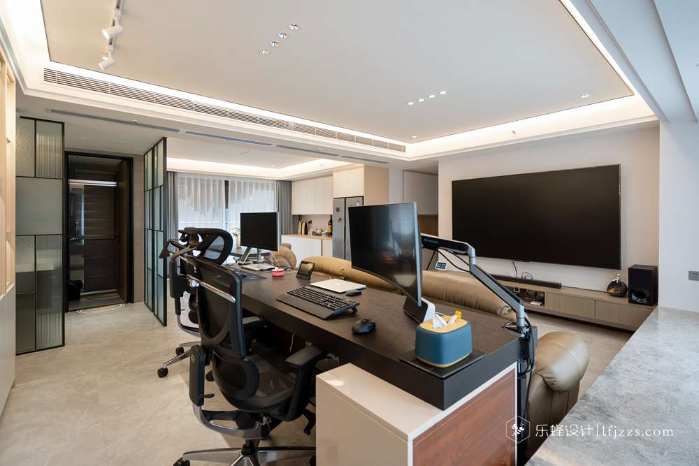 業主比較喜好電競,設計師依據業主需求,將客廳空間設計更為隨性,將電競房大膽的搬到客廳空間中,像網咖二連坐,與朋友沉浸在電競的歡樂時光。