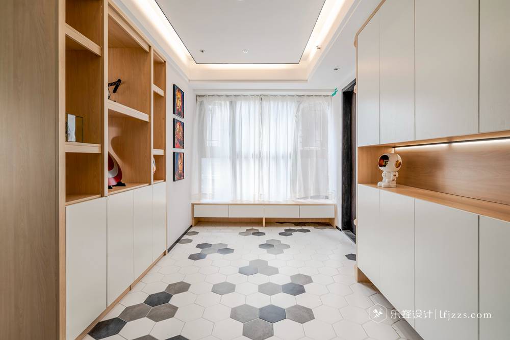 開闊、高通透,是走進這個玄關的第一印象;玄關的空間足夠大,在墻體兩邊添加大量的玄關收納柜,把家的收納部分做到極致。