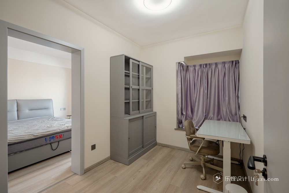 主臥的衣柜足夠多,所以主臥外衣帽間改造了書房,業主更需要一個學習工作打游戲的空間。于是重新設計,配以同色系列的書柜、座椅,供業主享受獨處時的精神世界~