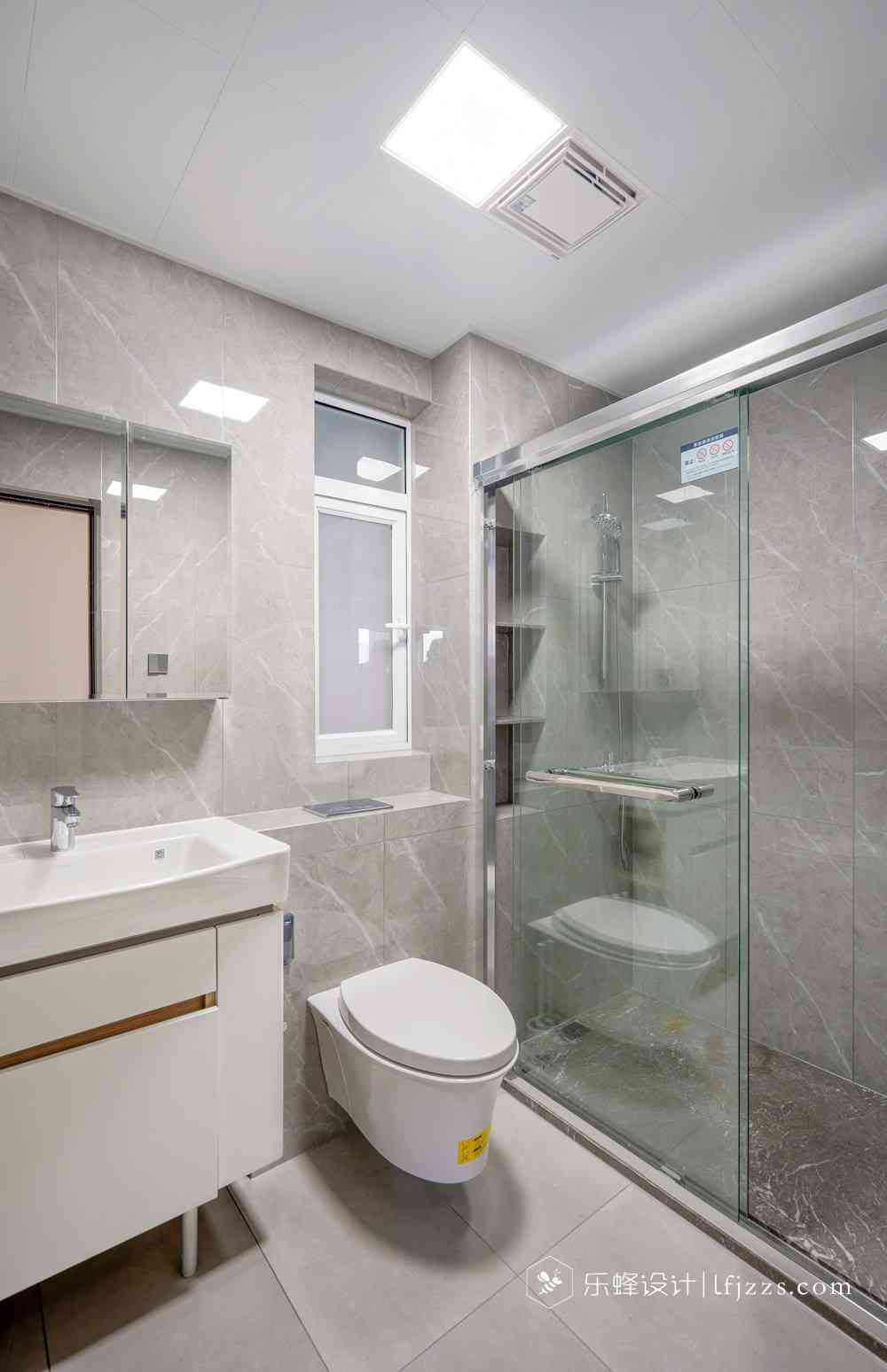 衛生間三分離設計,洗手臺馬桶以及洗浴區,有效的用玻璃隔墻做了干濕分離,墻體做了壁龕設計處理,留有洗浴用品的擺放空間。