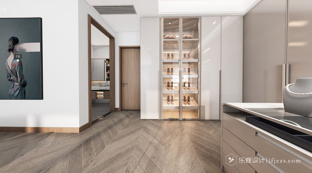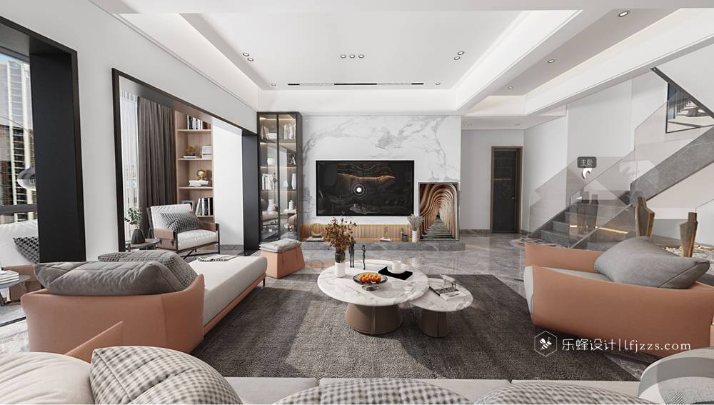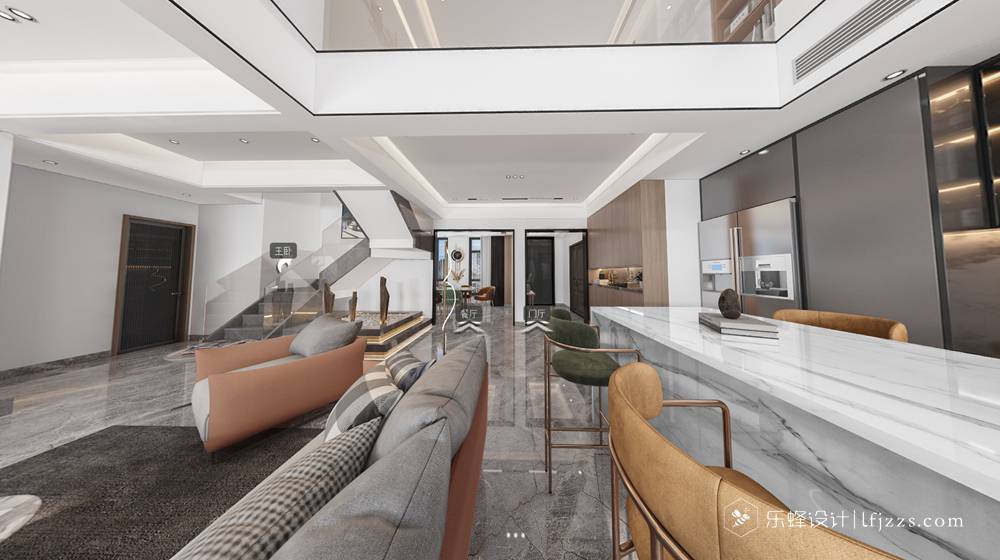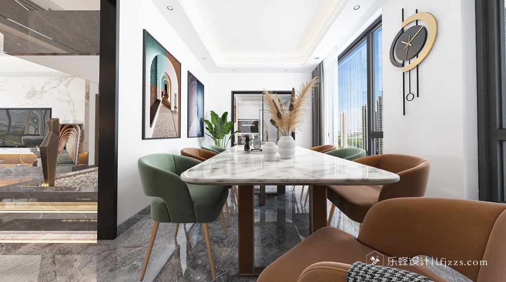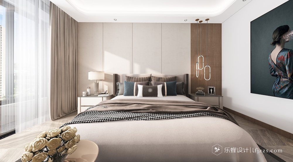 背景墻面裝飾采用了經典的壁爐造型,突出整個空間的氛圍感而其他地方則選擇乳膠漆為主,在特定位置點綴不同的顏色,配上美式的家具和燈具,突出風格氛圍。