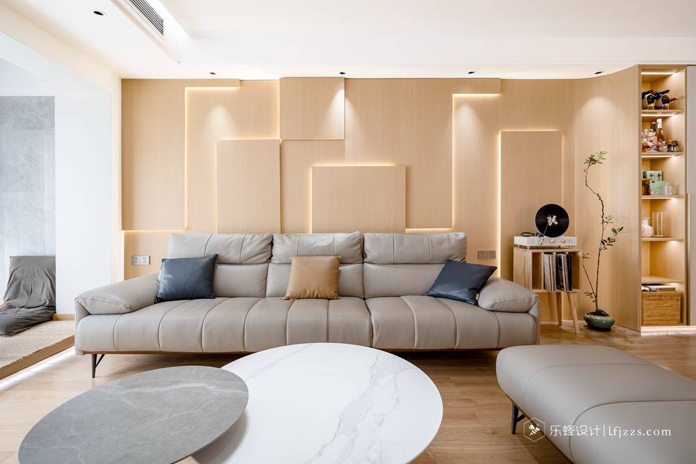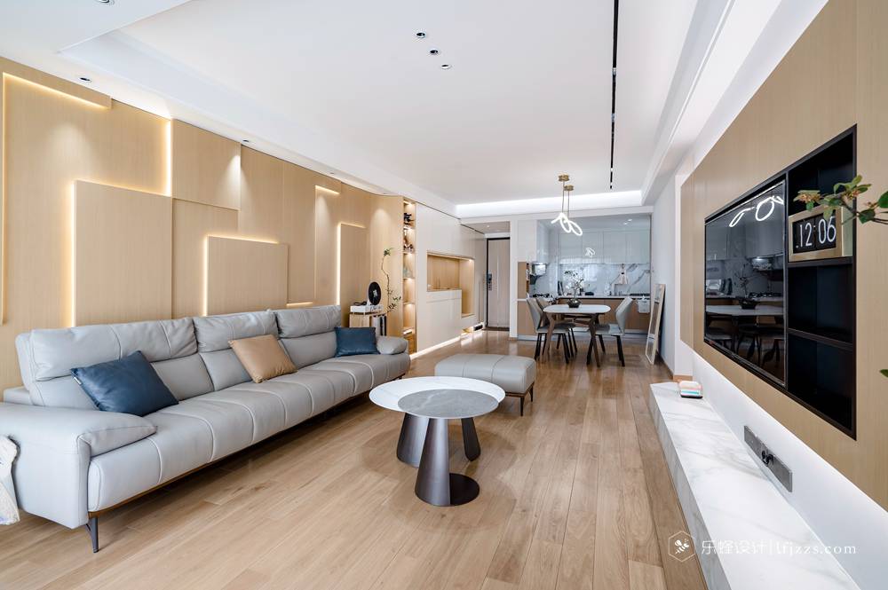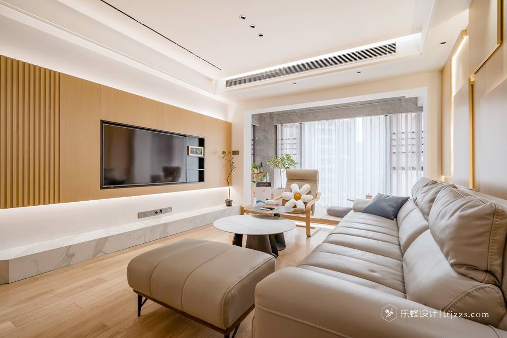 - 客廳整體基調(diào)以原木自然風(fēng)為主,溫馨的燈光,搭配軟皮沙發(fā),以及恰當?shù)牧舭祝参镒鳛辄c綴,營造舒適的居住氛圍。