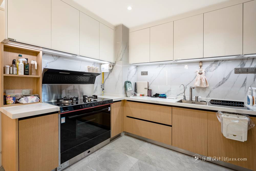 - 廚房實景圖 - U型設(shè)計,灰白墻地磚搭配原木色櫥柜,使整個空間干凈利落。