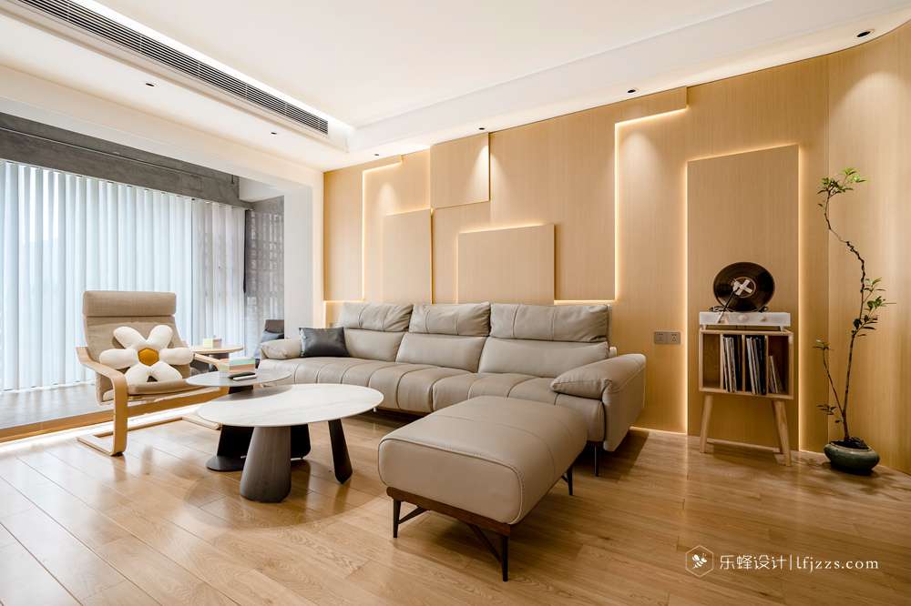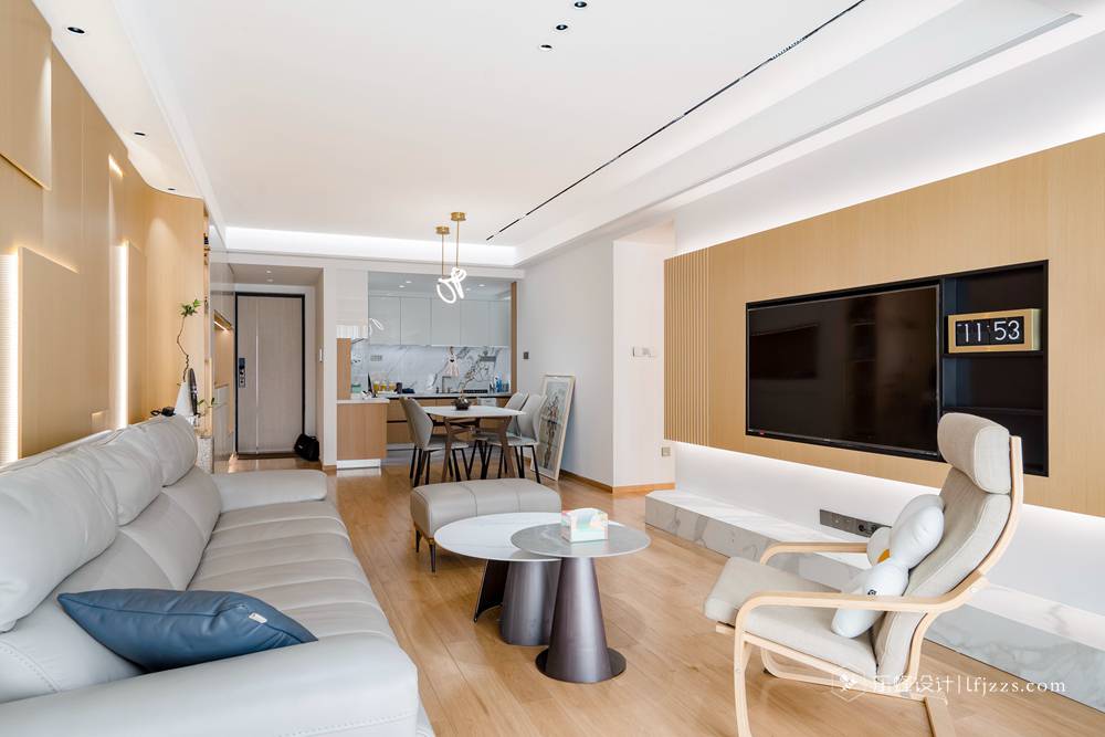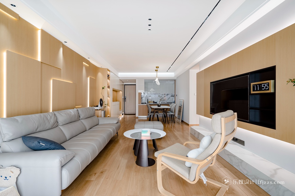 本案是一套龍光 · 玖龍璽120平四居室房子,采用日式原木風(fēng)格,客廳、餐廳、廚房一體化,使整個空間更加寬敞明亮。