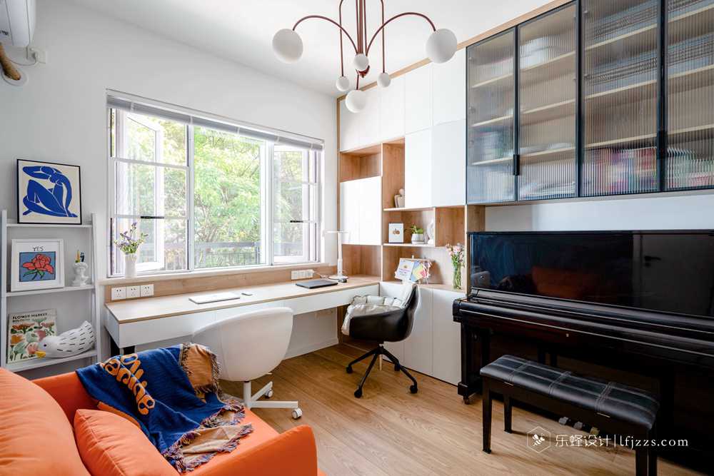 門后這面墻刷半高的黑板漆,釋放孩子愛玩的天性,能夠在這里用粉筆涂寫然后隨意擦除,寬敞的空間適合孩子在這里游玩和休息。