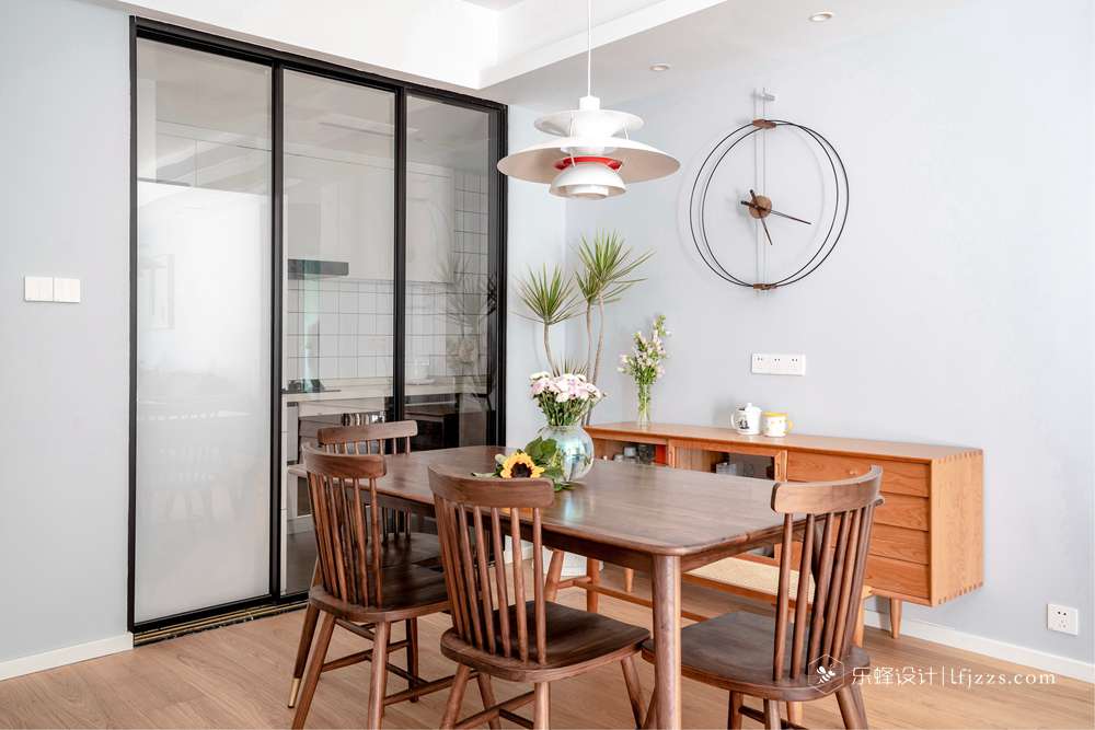 北歐風(fēng)格的空間中,自然采光顯得十分重要,作為本案這種低樓層的空間來說透過窗口有這種采光量十分難得,外面的樹木郁郁蔥蔥綠意盎然讓人心情不自覺就變得很好。