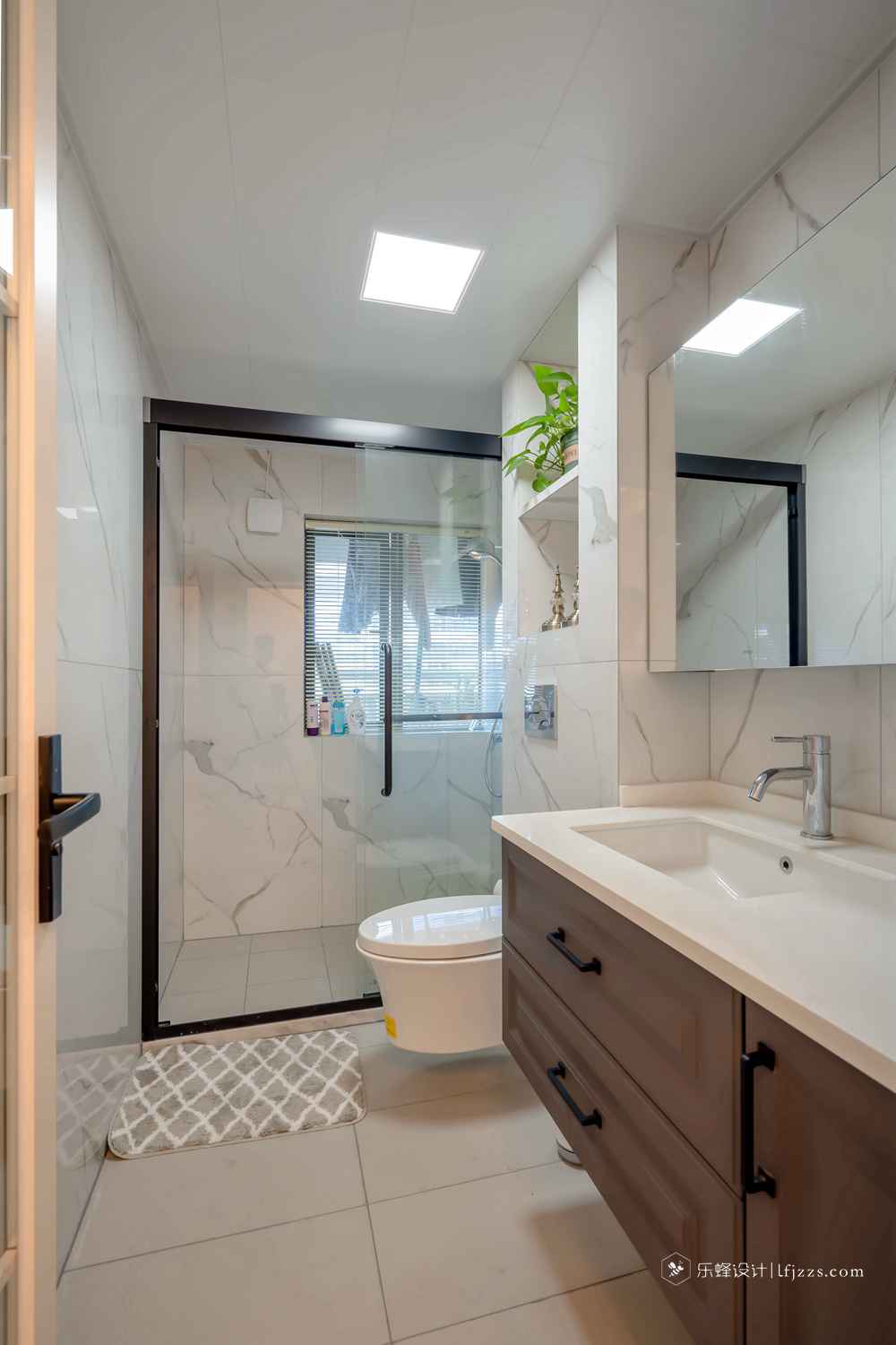 相比之下,主臥的衛生間則更強調空間的集約利用,鉆石型的淋浴房在做到干濕分離的同時節約了利用空間,浴室柜的造型也更加的小巧精致,更加強調使用的功能性。
