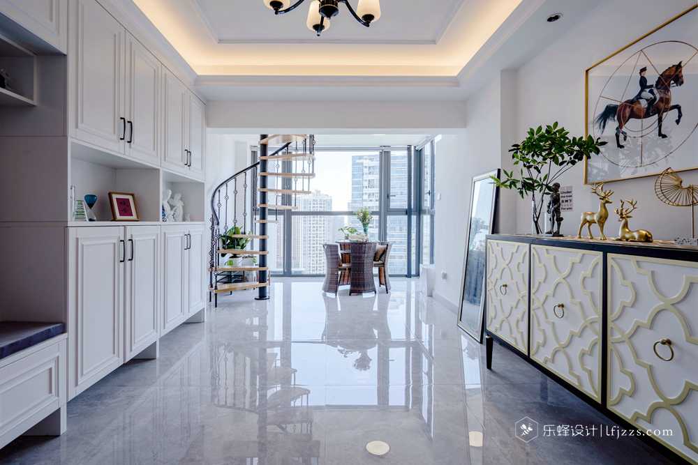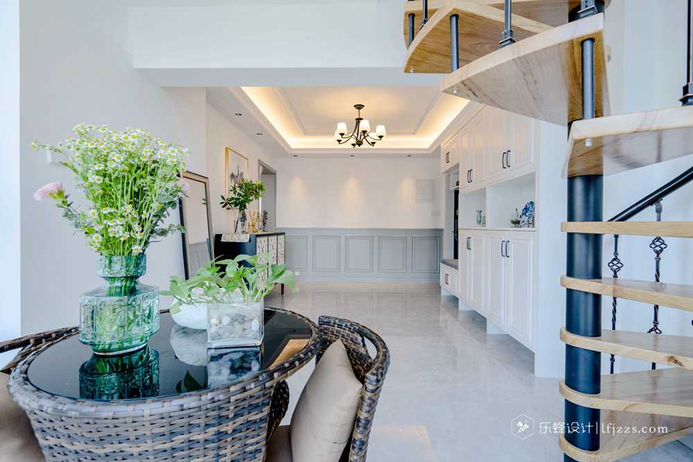 根據原來戶型的種種問題,我們進行重新規劃設計,把原先的L型樓梯改為圓形的旋轉樓梯,其他剩余出來的空間搭建樓板,充分增加可利用空間;主臥房門的方向我們也進行了調整。