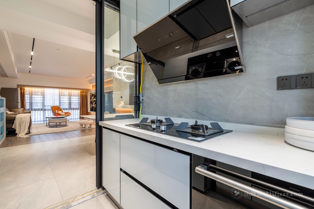 廚房U字型臺面最大程度上擴充了處方單操作面積,更加優化了拿洗切炒一系列廚房任務的動線,各類電器各有其位,各司其職
