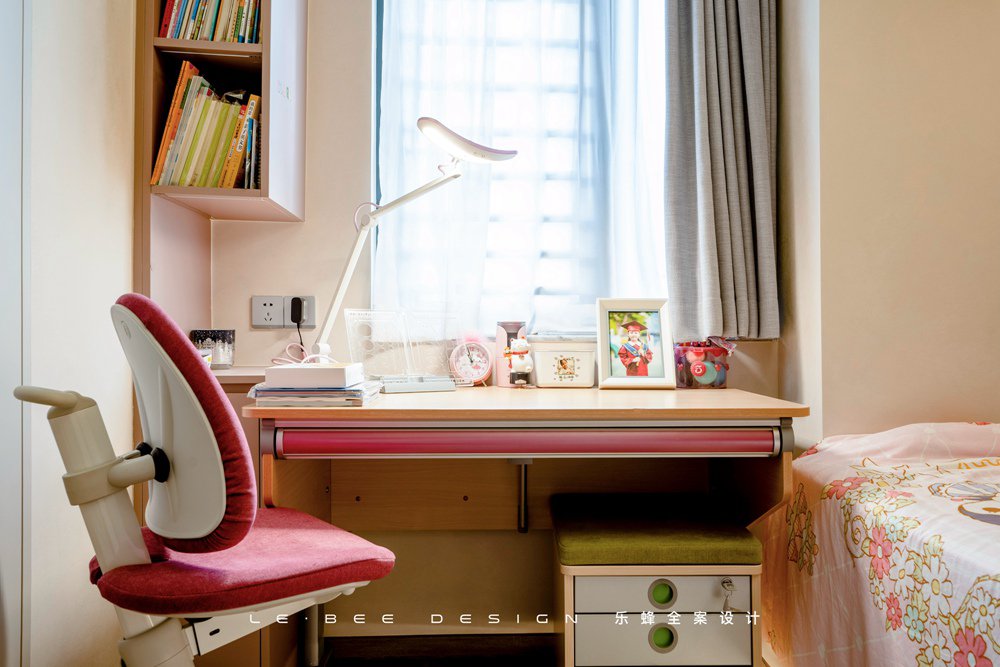 作為孩子學習的區域,書桌椅可調的高度的設計也十分人性化,可以通過孩子不同的成長階段來調節高度,從而適應孩子每個階段的身高變化。