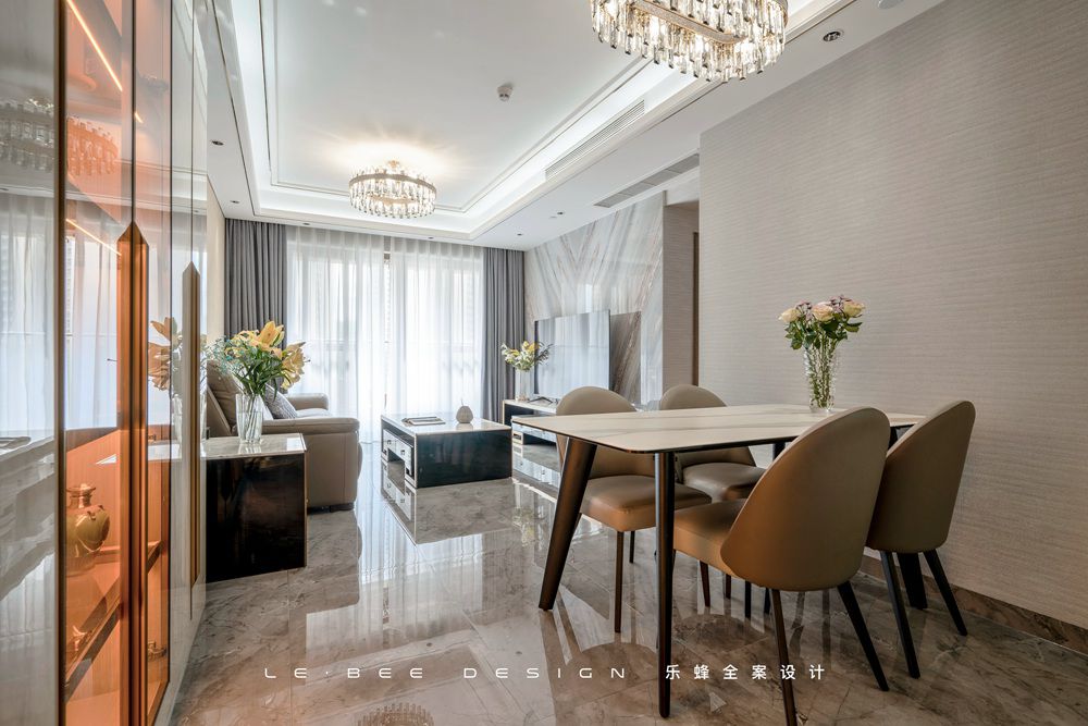 輕奢風格的空間以金屬、皮革的中性色調為主,用色彩的純度傳遞細膩的質感。造型簡潔,線條流暢的家具組合搭配,營造出穩定、協調、溫馨的空間感受,滿足現代年輕家庭的輕奢需求。沒有過于搶眼的造型,亦沒有豐富色彩的疊加,而是以最典型的現代簡約風格,令所有的色調統一,同時,細節處流露出精致的生活情調。