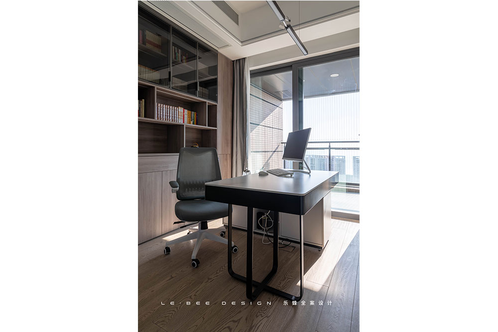 書房外是陽臺,落地窗使自然光毫無阻礙地注入,為工作和學(xué)習(xí)提供了不二的處所。