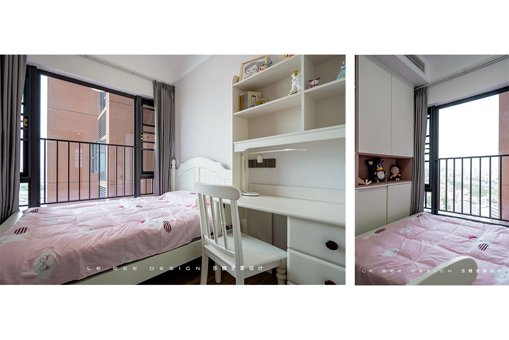- 兒童房實景圖 - 兒童房就是小女孩的活動天地啦,淺色的家具在視覺上比較緩和,粉色的床品作為點綴,陪伴孩子成長的童年。