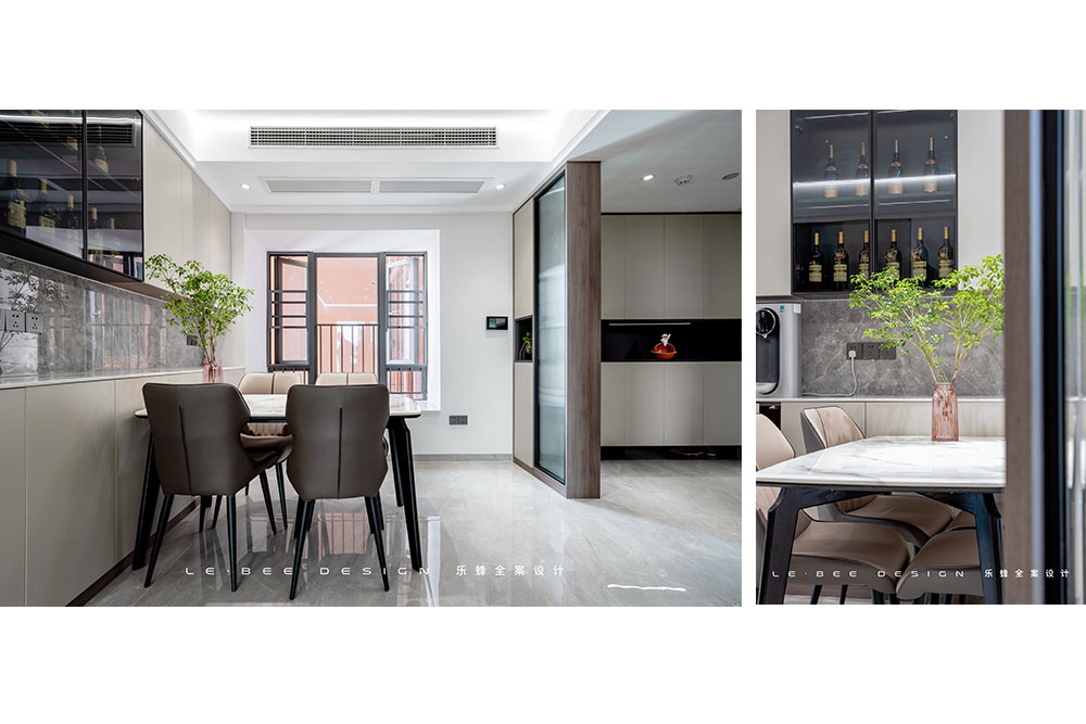 - 餐廳實景圖 - 餐廳定制了一組餐邊柜,增加收納空間的同時又能夠作為展示使用,這對于喜歡喝酒和收藏酒的屋主來說是很棒的設(shè)計。