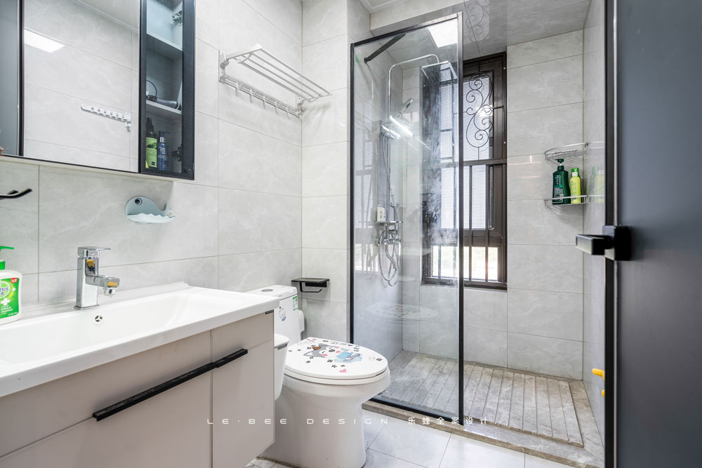 淋浴區(qū)安裝一扇窄玻璃隔斷已經(jīng)能夠很好地隔絕水汽,極簡設(shè)計(jì),備受年輕人的喜愛。