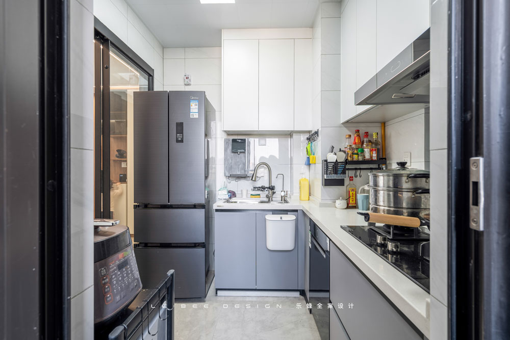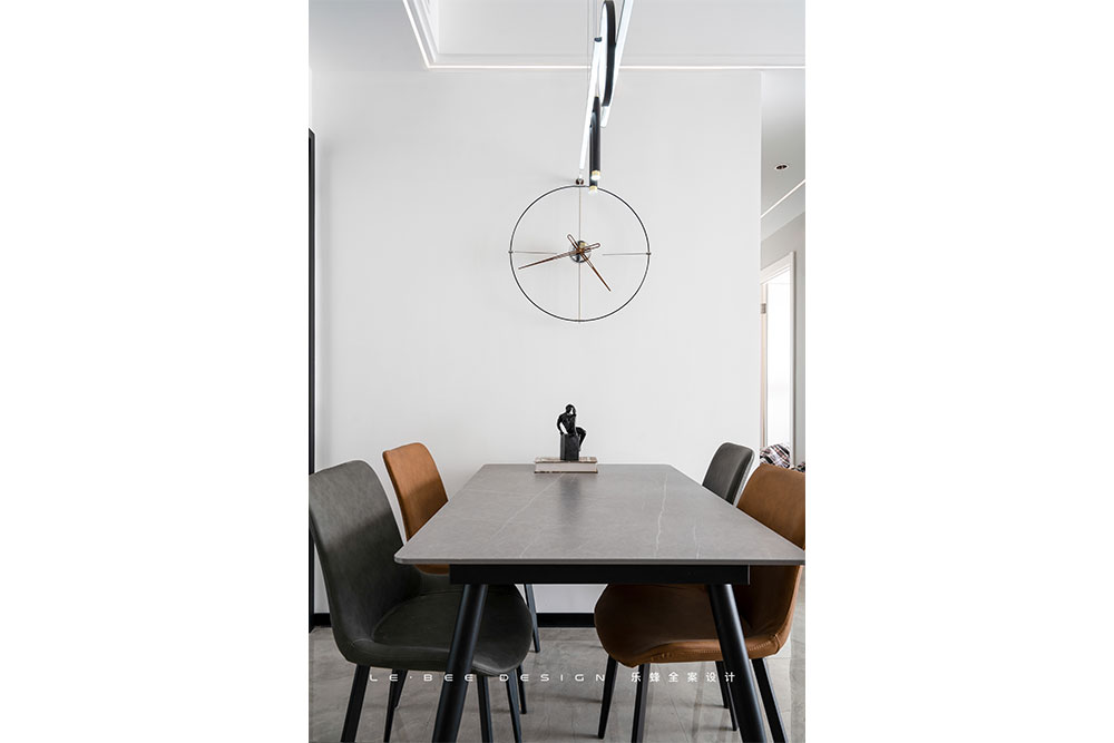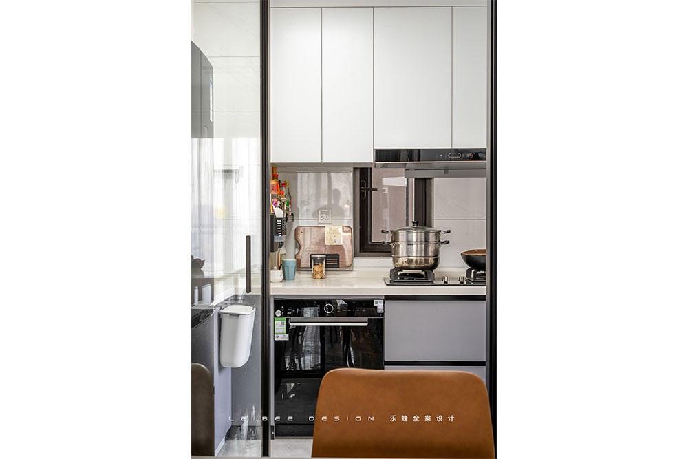 為了做到最好的透光效果,我們選用的是全透明的玻璃推拉門,兩側(cè)的光線可以無阻礙地進(jìn)入,更是增加了餐廳的視覺通透度,餐廳和廚房的視覺聯(lián)動(dòng)也更高了。