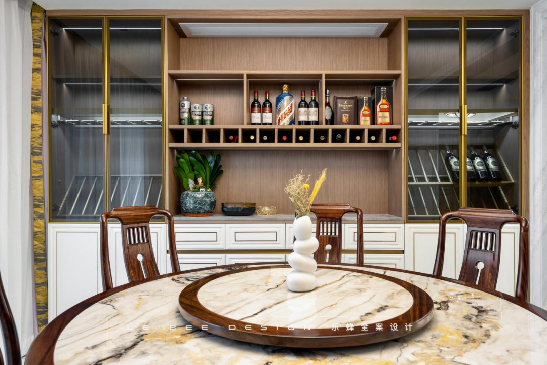 本案業(yè)主為老客戶介紹而來,因?yàn)槔峡蛻粑挥谖覀冊(cè)O(shè)計(jì)和施工各方面滿意程度都很高,有前期客戶口碑的加持,業(yè)主對(duì)我們的信任也很深厚,在溝通設(shè)計(jì)過后對(duì)我們給出的方案非常滿意,于是愉快地達(dá)成了合作。業(yè)主居住條件為五口人,三個(gè)孩子,希望保留五個(gè)房間,因?yàn)榧依锶丝诒姸啵栽谑占{的設(shè)計(jì)上格外重視,包括入戶的儲(chǔ)物和主臥的儲(chǔ)物都有很高要求。業(yè)主一家酷愛閱讀,家中藏書也十分豐富,所以希望擁有足夠的空間用以收納書籍,并且都能夠在觸手可及之地。此外,業(yè)主對(duì)于入戶門直對(duì)臥室門的原始戶型不太滿意,希望加強(qiáng)室內(nèi)的隱私性。經(jīng)過我們的設(shè)計(jì)后,完美解決了業(yè)主的所有需求,對(duì)于業(yè)主喜愛的中式風(fēng)格元素的利用也恰到好處。