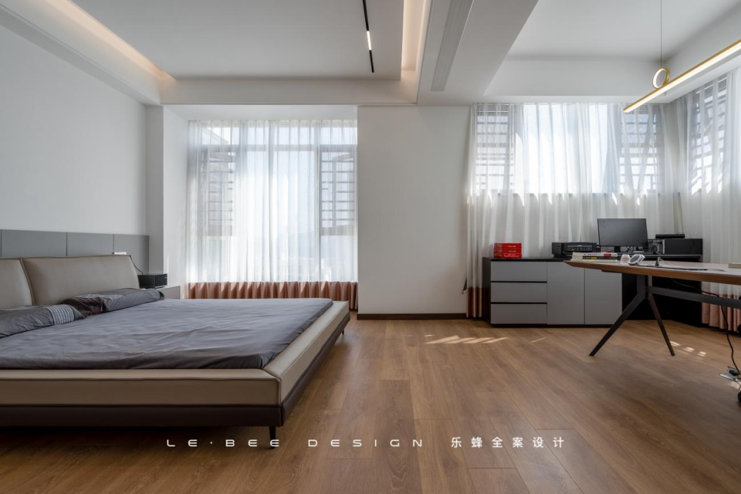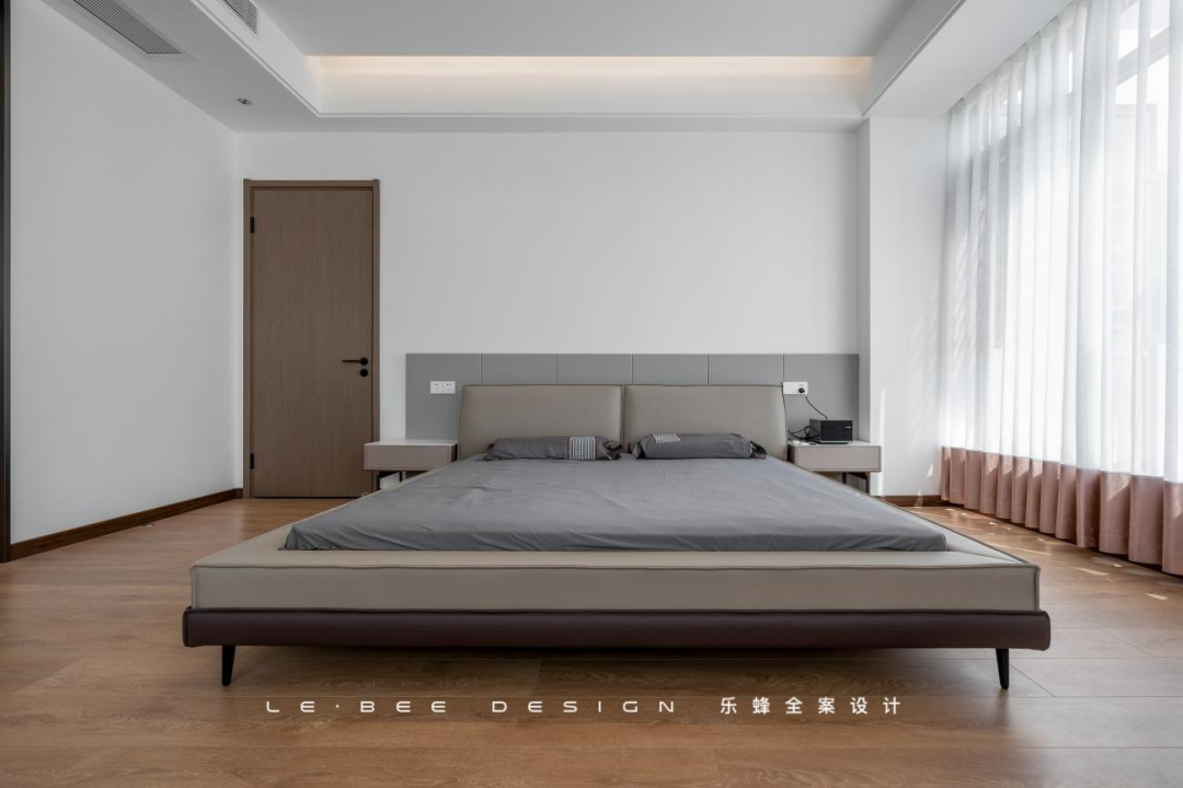 現代化的生活體驗、極簡高級的審美的主臥設計的核心。在格局上,主臥做了套間設計,每個功能都囊入其中。