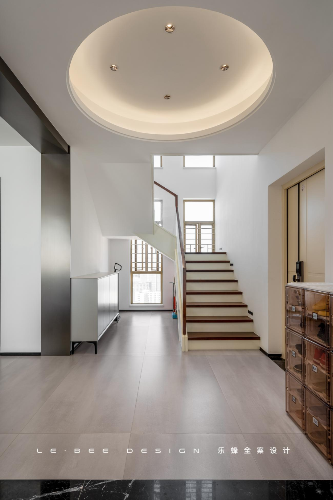 玄關區域設計了特殊造型的吊頂,燈光效果更加聚攏,層次豐富的設計在簡約中勾勒的大氣恢弘。