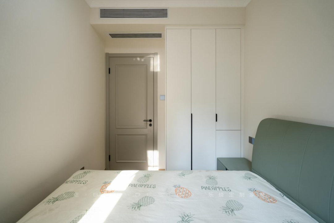 作為客房使用,次臥選擇了精簡使用的設計,一床一柜足矣。