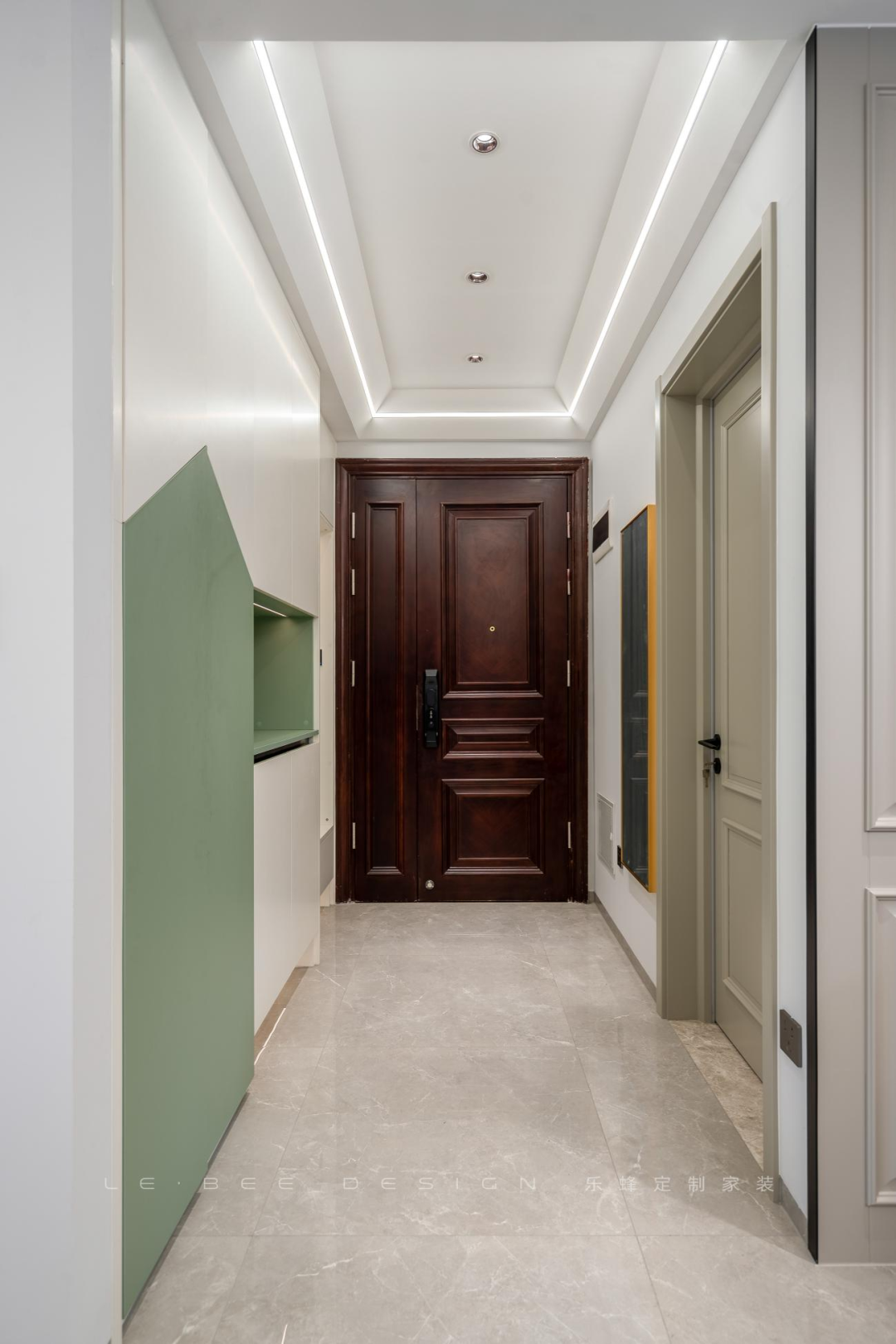 依據戶型優(yōu)勢靠墻設計了一組玄關柜,墻內柜的形式不占據玄關的空間,過道寬敞,來去自如。玄關柜選擇白色和薄荷綠拼色,活潑但不夸張。玄關格局經過細致和合理的規(guī)劃,把每個功能都歸納在了其中。