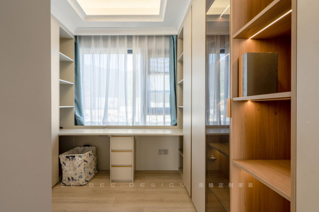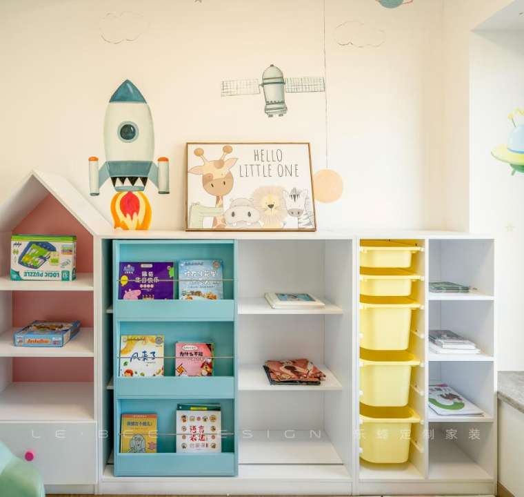 房間內設計一組收納柜,孩子的玩具和書籍讀物都能收納在此處,規(guī)整的收納空間也能夠培養(yǎng)孩子的收納能力。