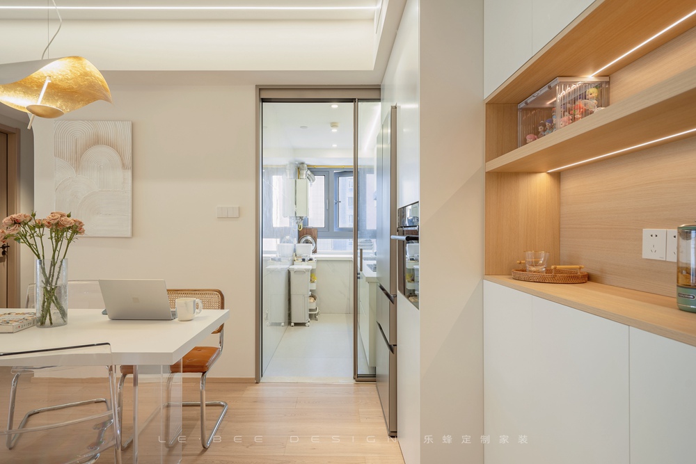 - 廚房實景圖 - 廚房增加了玻璃移門,保證了廚房餐廳之間的通暢無阻,也能消減廚房的噪音和油煙,美觀實用。